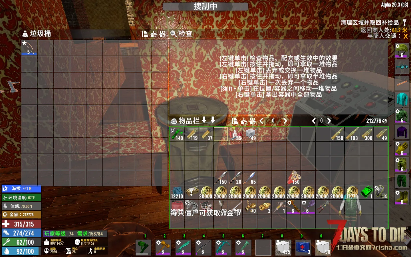 把东西放进去 在向下拿起垃圾桶就可以移除里面的物品 别放贵重物品哦