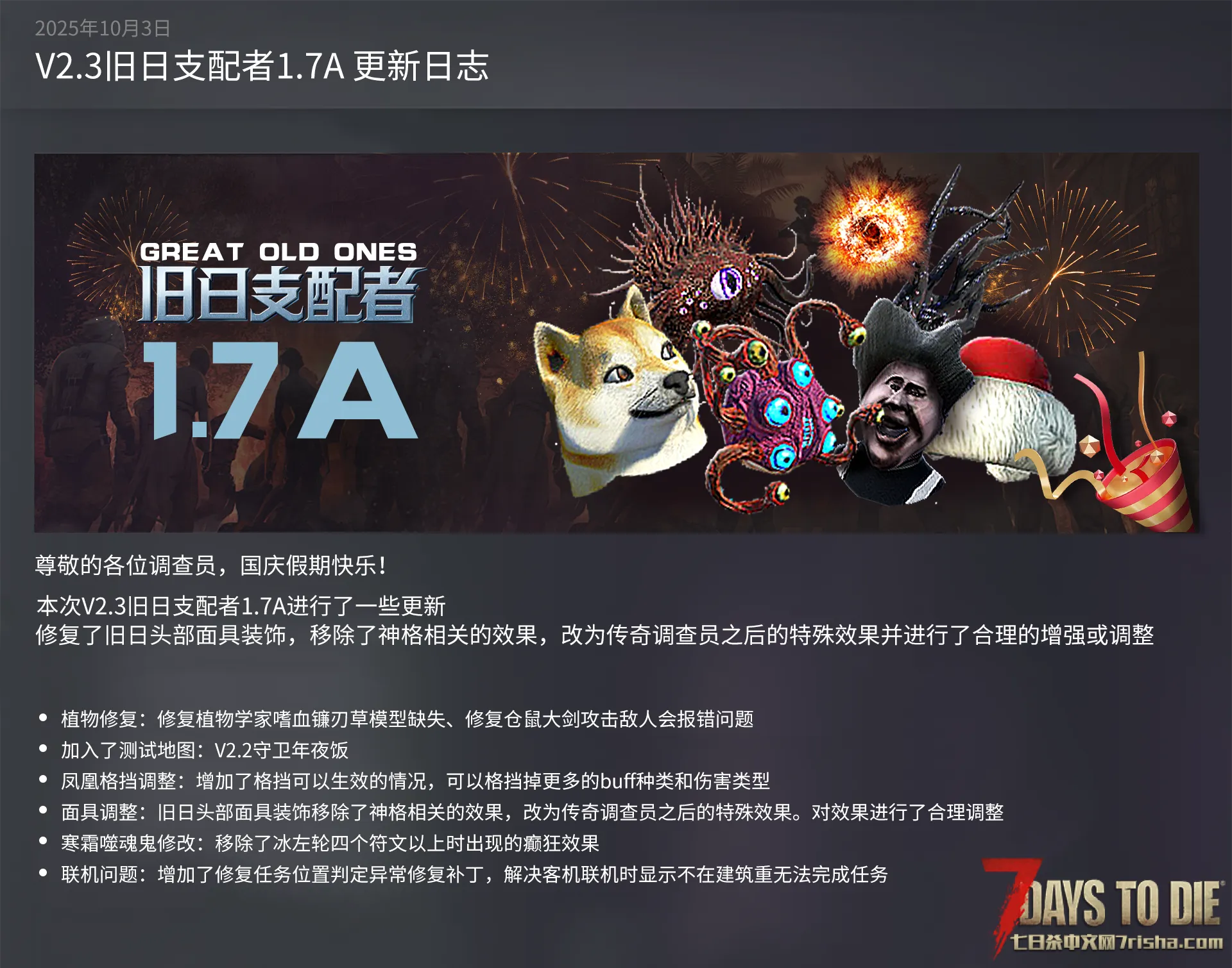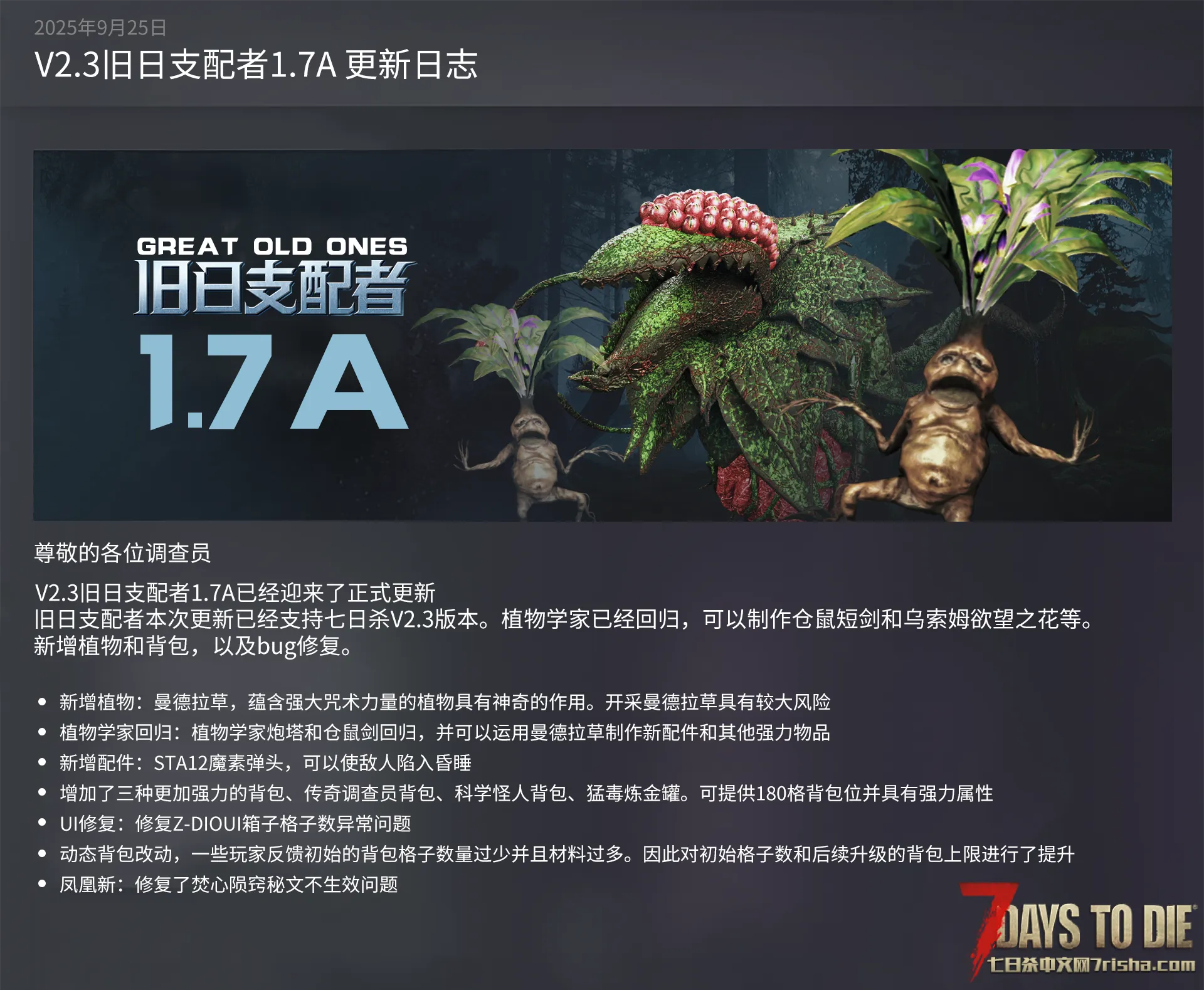 更多七日杀旧日实况视频欢迎关注B站搜索关键词“七日杀旧日支配者”