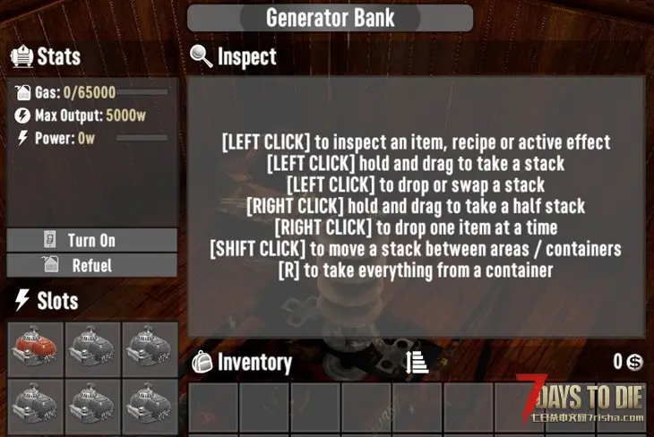 于20.6测试(B9)https://7daystodiemods.com/generator-bank-simple-modifications/