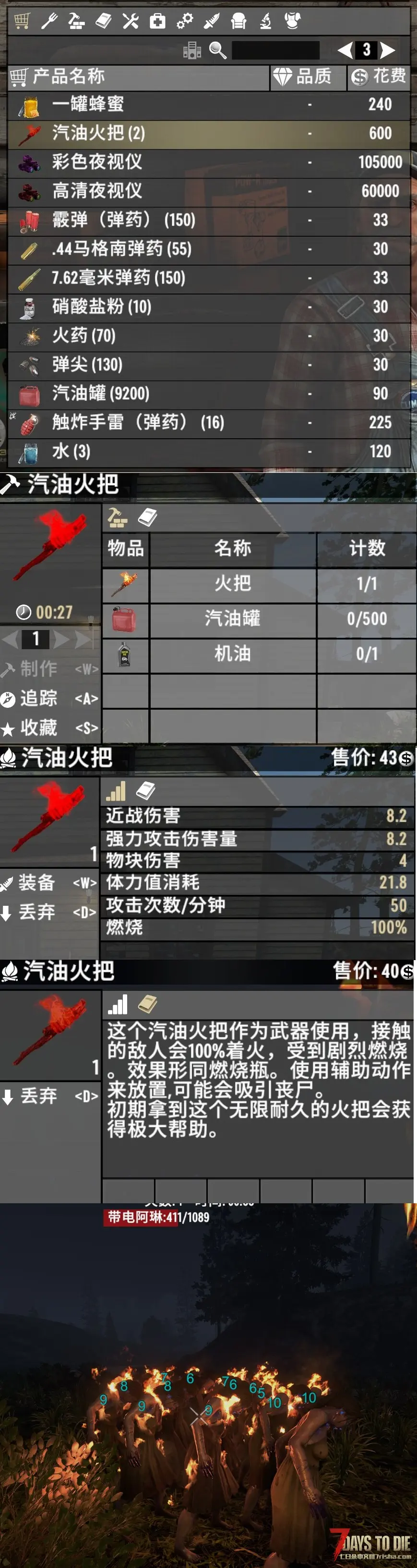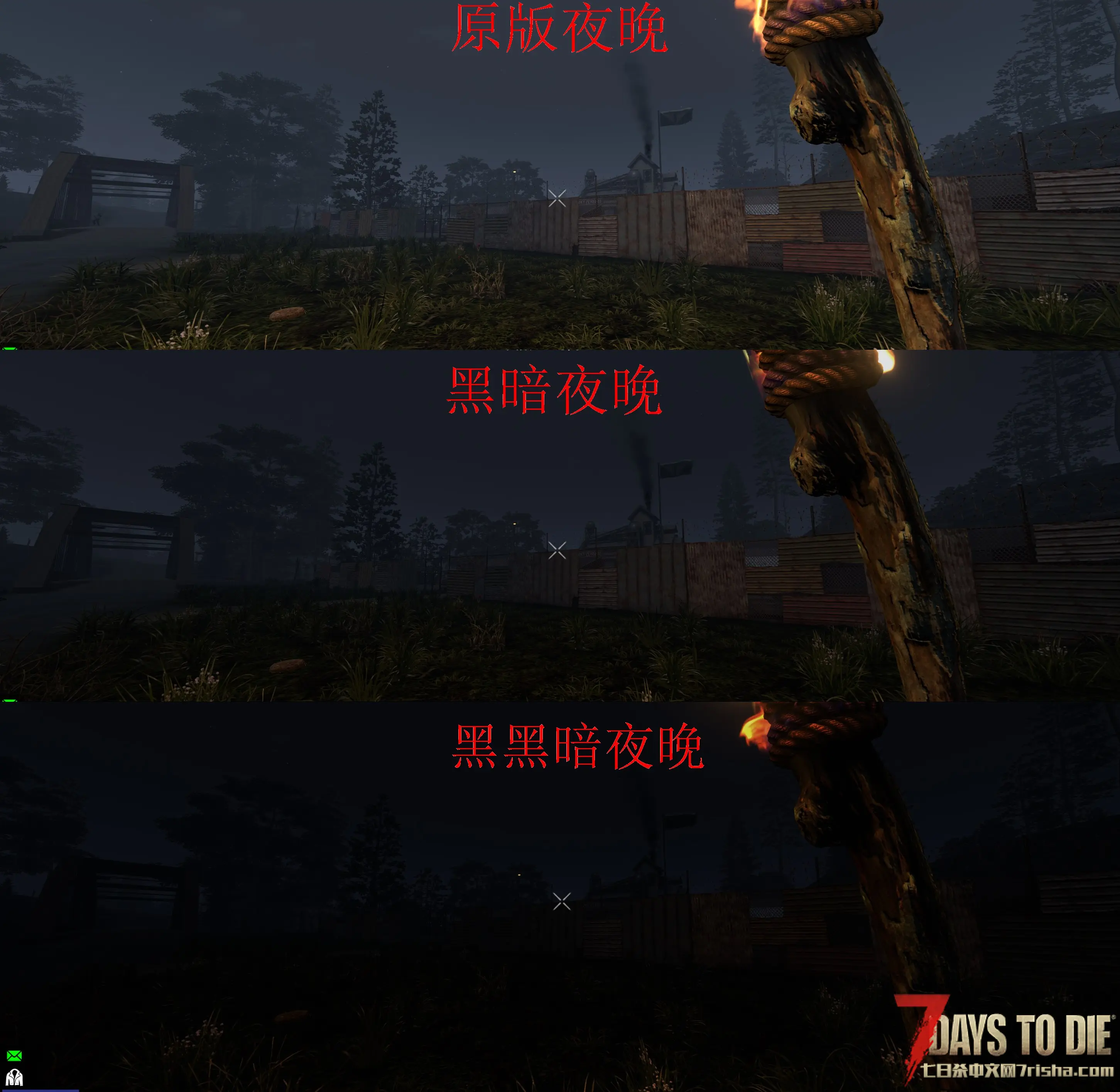 我喜欢真实系的七日杀MOD,更黑更真实的夜晚能增加沉浸感。以前发布过A21版本黑暗夜晚很不错。现在更新到正式版V2.0~v2.3(去掉了v1版本下载,如有需要可以私信我),另外添加两款高清夜视仪。再添加一个汽油火把,收20个金币辛苦费,上图看真相(白天的室内更亮后,进屋就不会眼睛难受了)