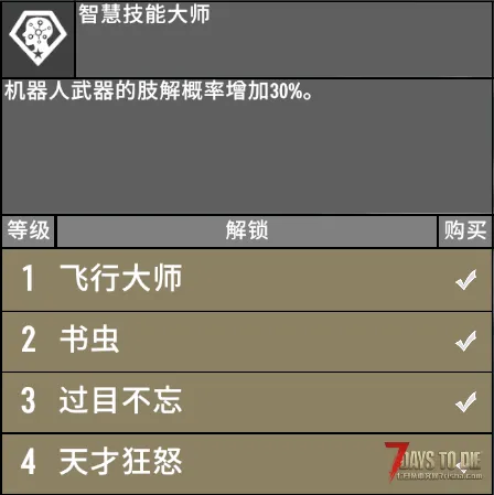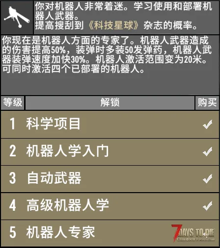 4 级效果修改为机器人武器的肢解概率增加 30% 。