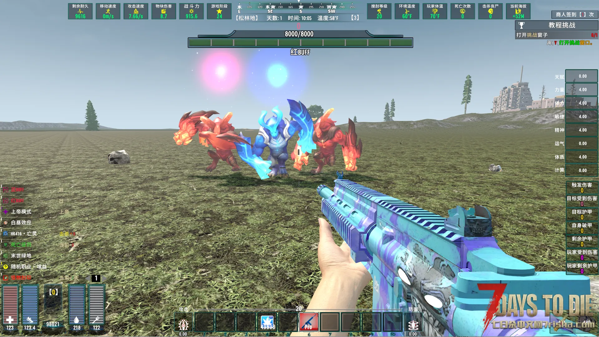【奇异世界】本Mod特色:节日系统、闪光系统、潜能系统、竞技系统、强化系统、觉醒系统、洗练系统、签到系统、每日系统、幸运星系统、破甲系统、等等各种突破官方没有的功能技术、独立伤害计算公式算法、新UI界面、特效、模型、枪械、武器、僵尸、BUFF、模组、动态难度、技术副本等你挑战!