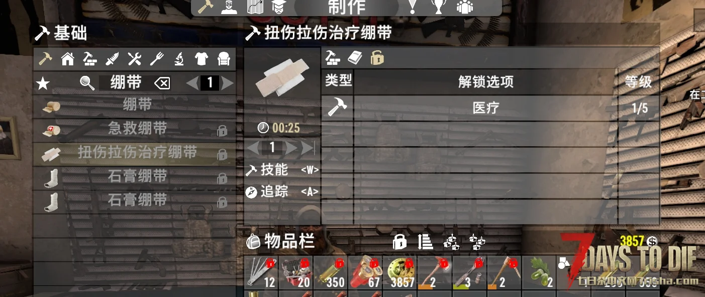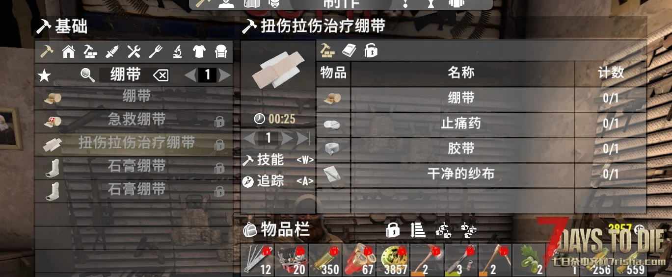 此mod为游戏中添加了专门治疗扭伤拉伤的绷带,作用是立刻治愈扭伤级肢体创伤的。