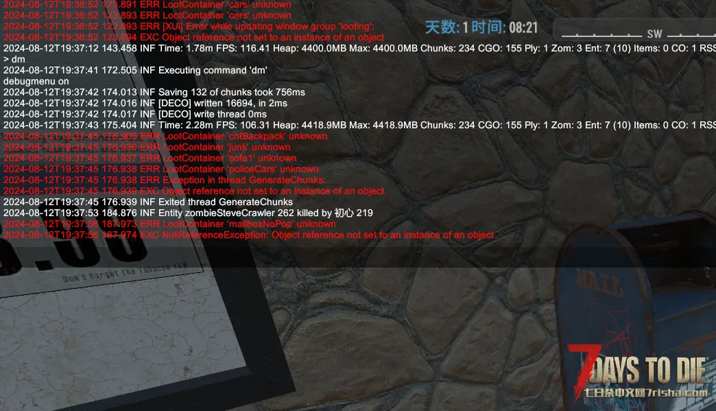 加载mod后无法打开任何鸟巢,包裹等战利品