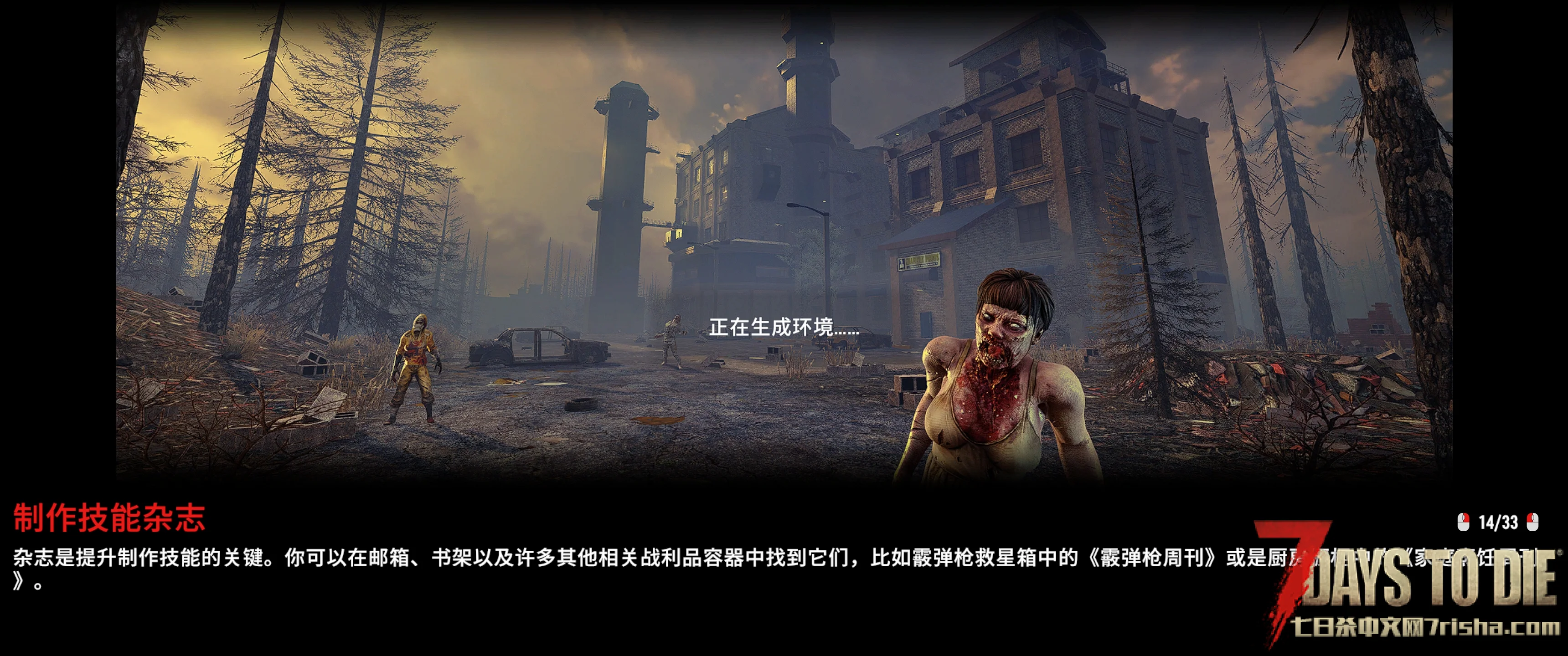 打开游戏直接前面都正常,点击“重生”之后就一直卡在这个“正在生成环境”,等好很久还是进不去,只装了安安原版的丧尸血量和180格的背包模组