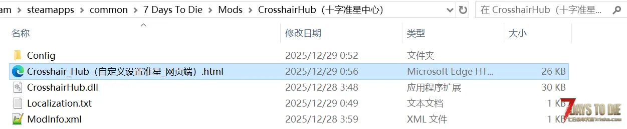 用浏览器打开“Mods\CrosshairHub(十字准星中心)”文件夹中的“Crosshair_Hub(自定义设置准星_网页端).html”