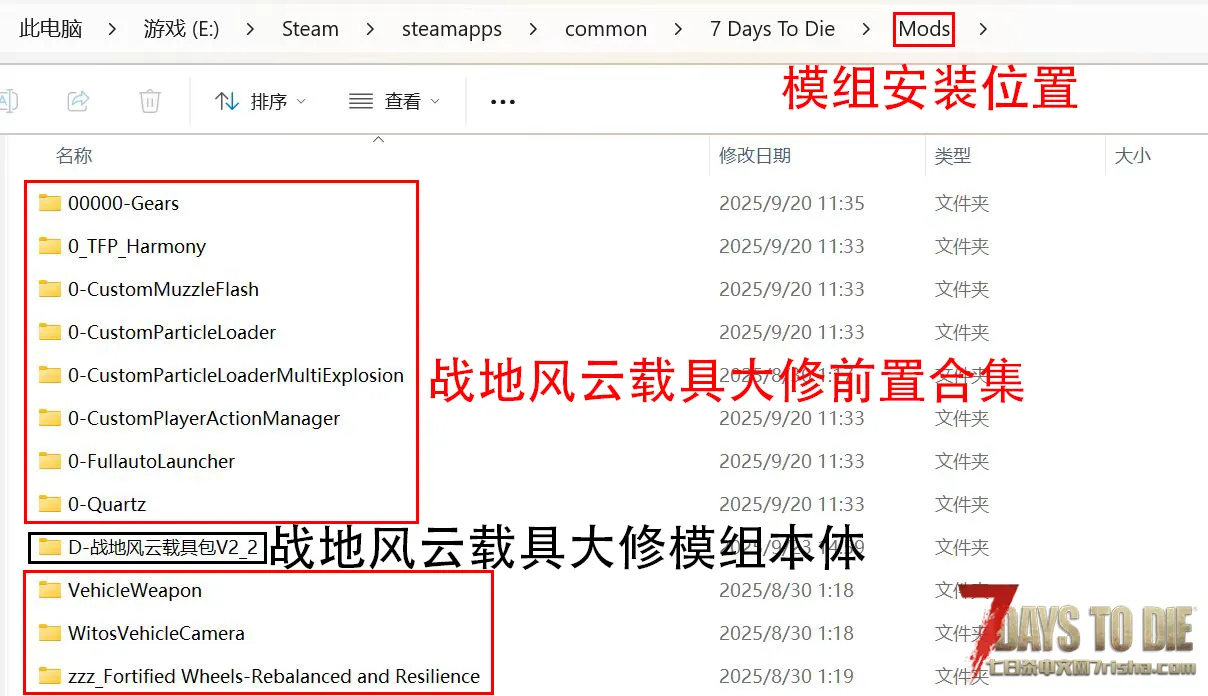 7 Days To Die/Mods文件夹中。如无Mods文件夹请自行创建。 -