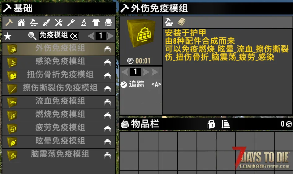 8个免疫小类模组和一个综合免疫模组 模组名字就是模组效果 有完整配方 可直接使用