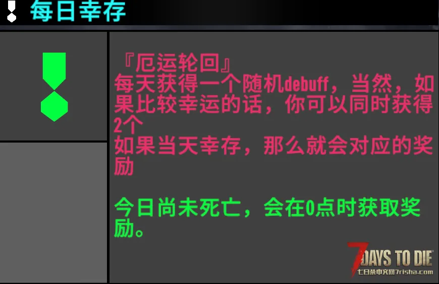 新增每日幸存奖励,如果当天未死亡,那么在凌晨6点就会获得奖励。