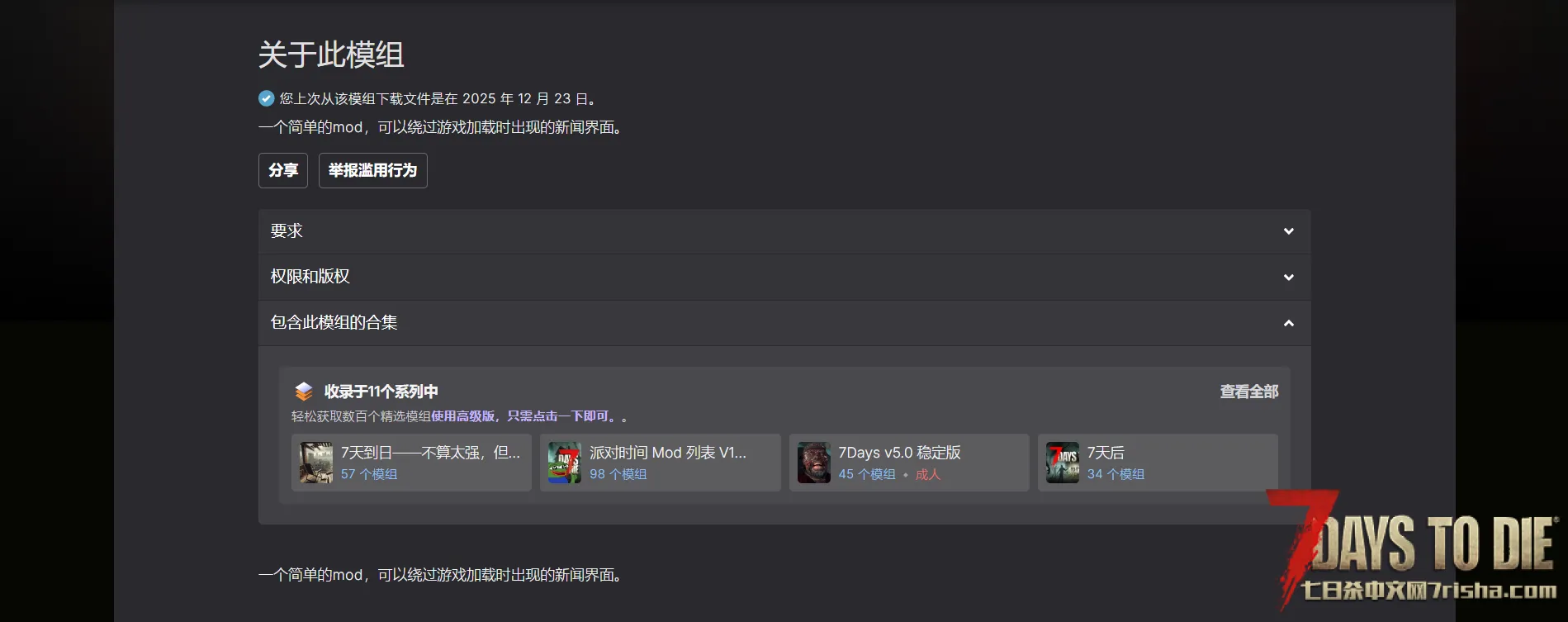 加载游戏时可以直接跳过七日杀游戏官方提供的新闻界面。