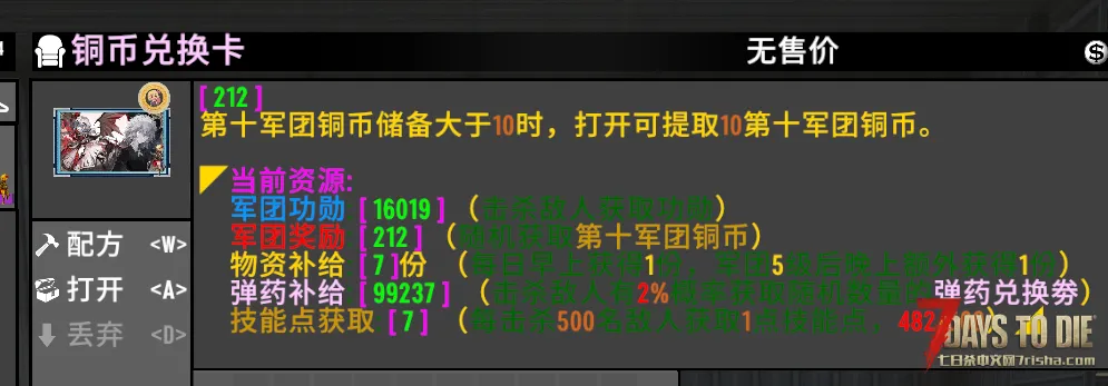 这张可以打开获取资源,除了技能点是直接增加的外,其它的必须手动打开相应的卡片(因为联机和服务器bug现在仅存这个方式)