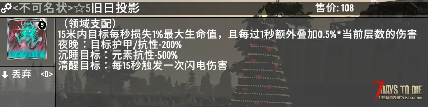 – 旧日投影:15米领域内腐尸每秒流失1%生命值,夜晚护甲崩解200%