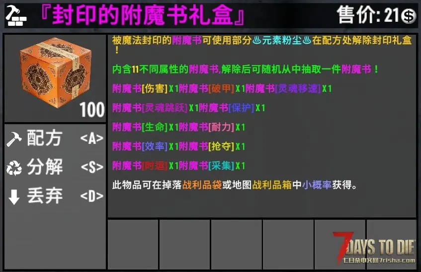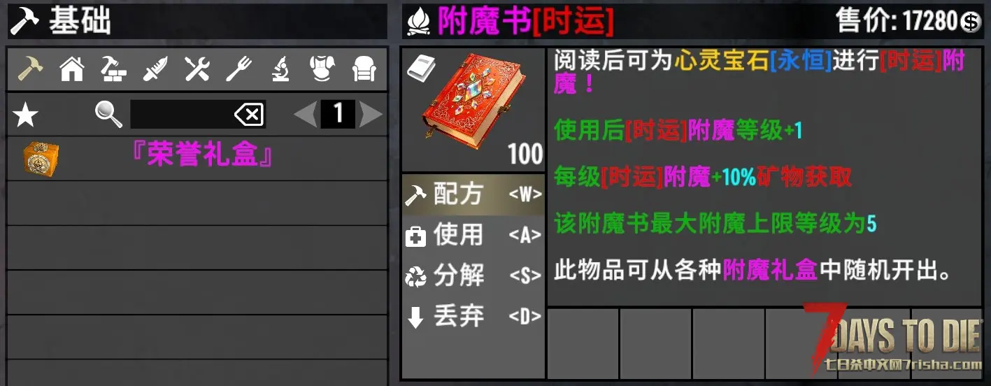 获得重复附魔书时可点击配方兑换成荣耀礼盒,打开礼盒后可获得一定量♦杀敌勋章♦