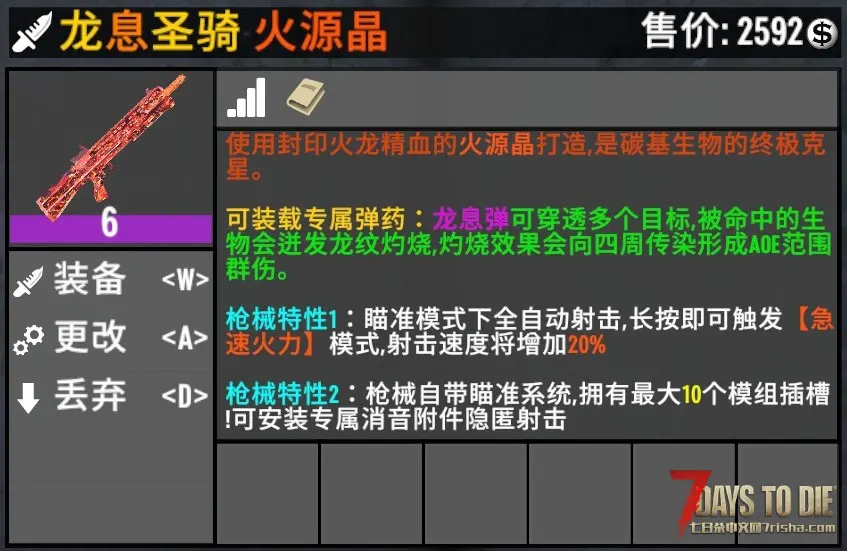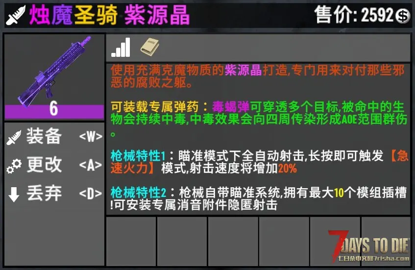 MOD安装方法:解压放入(Mods)文件下即可!MOD适配七日杀V1.x~V2.5。