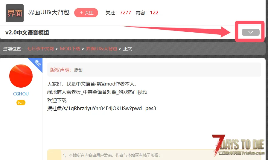 给视频点赞 就是对我最大的支持,感谢各位!更新记录✦250627 | v0.03新增: 2.0地堡建筑 广播语音 中文本土化✦| v0.02修复bug:无人机语音爆黄字, 适配 2.0版本七日杀✦| v0.01模组立项:5个商人+1个无人机 的中文语音本土化适配 , 适配 1.4版本七日杀相关视频模组宣传片:七日杀2.0将至!全中文语音模组抢先上线中文语音模组更新_新增地堡建筑绿地商人雷老板_中英全语音对照火烧地商人阿珍_中英全语音对照七日杀 | CG_HOU | 中文语音模组MOD | 持续更新中