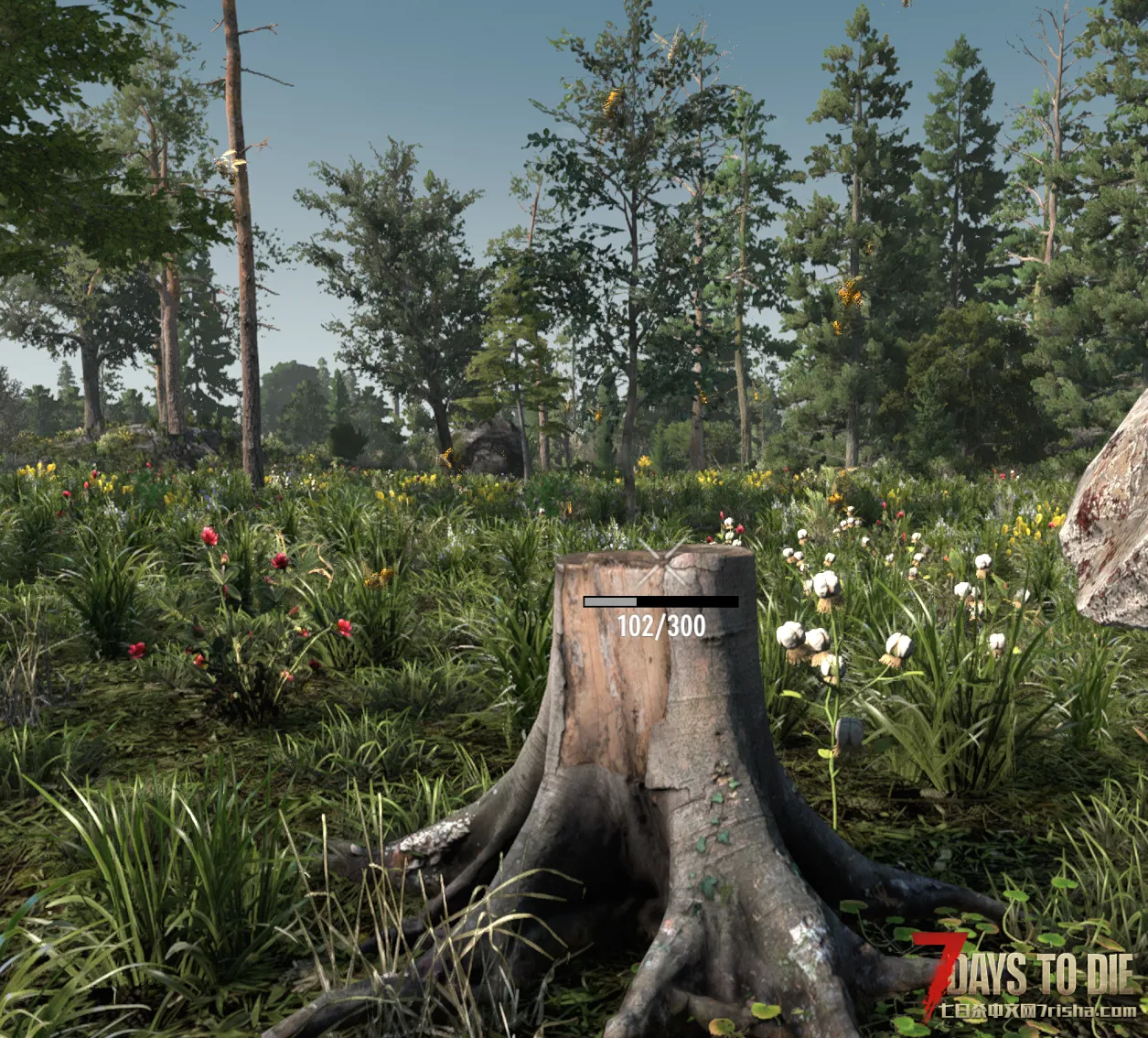 倒下的树木可以被砍伐或拾起(获得种子或单个木材资源)。