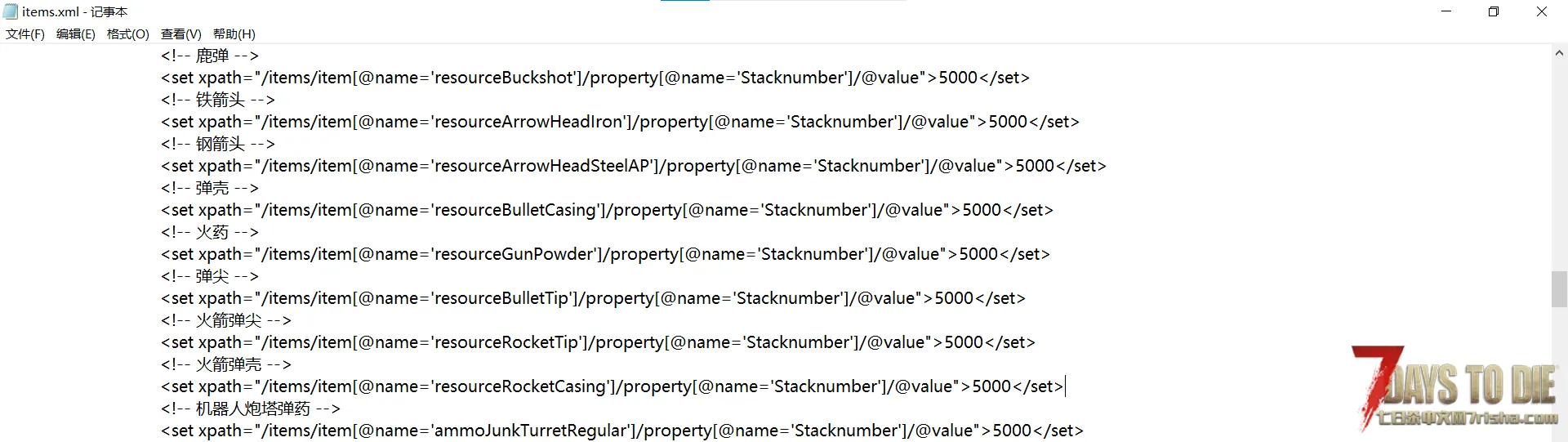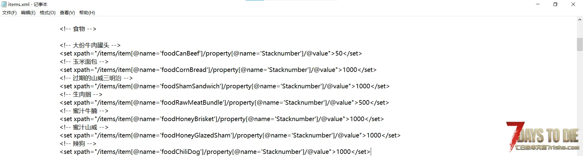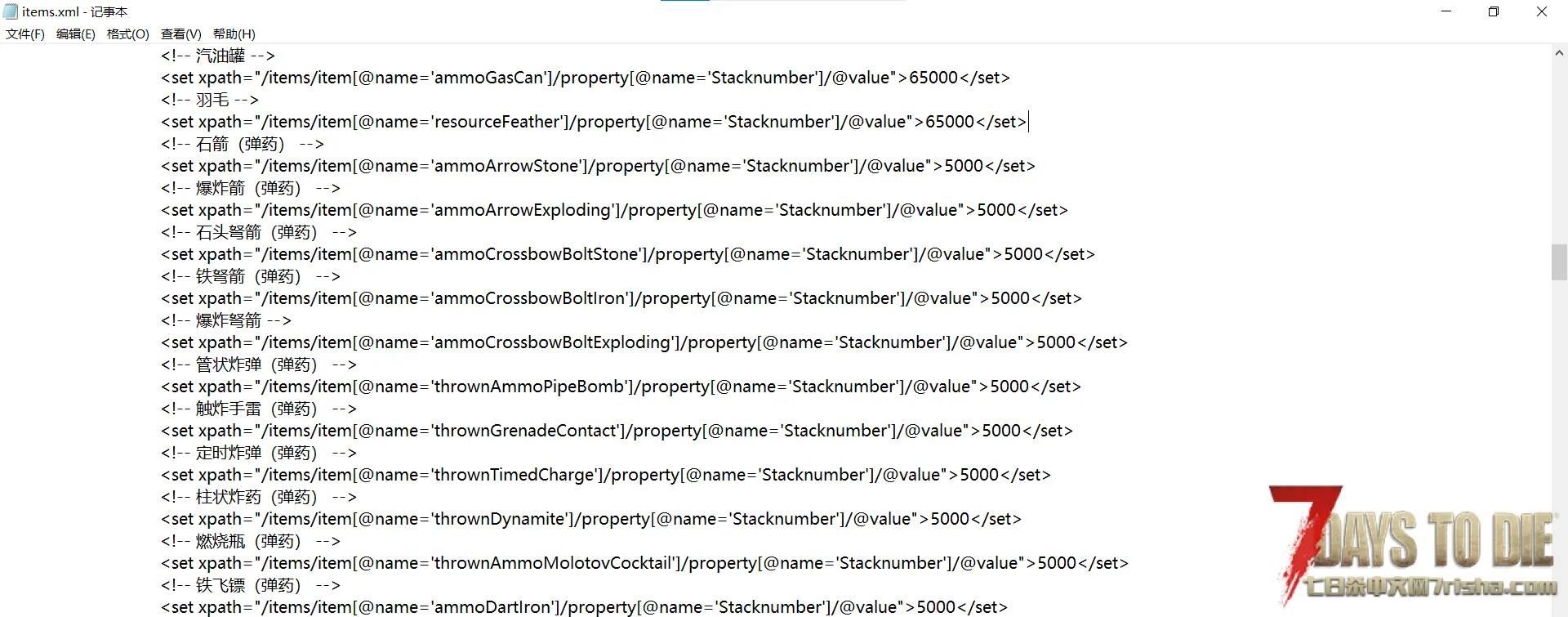 具体想要改自己想要的物品数量可以用记事本或者Notepad++打开编辑。