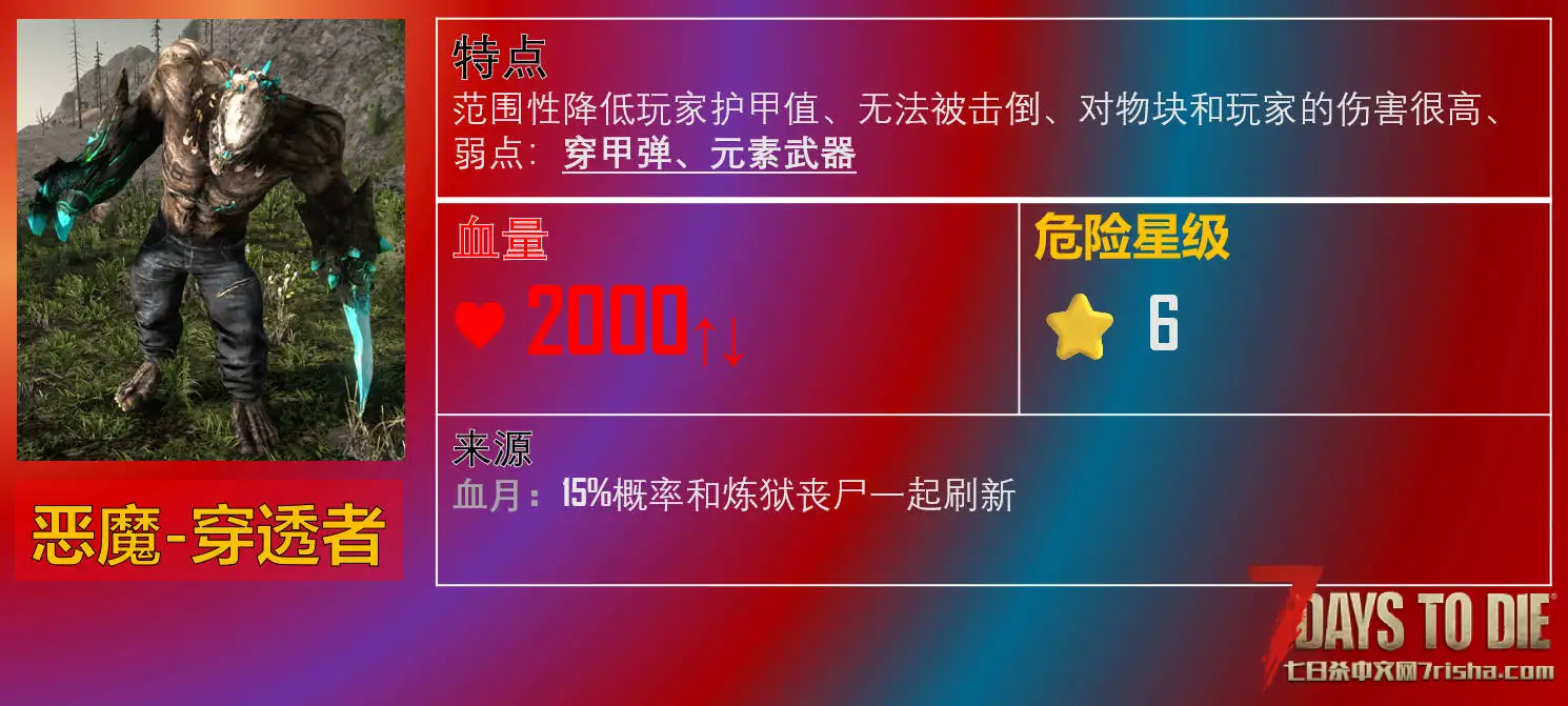 1.“恶魔穿透者”:使用穿甲弹和元素武器攻击,比如:燃烧瓶、火箭弹。
