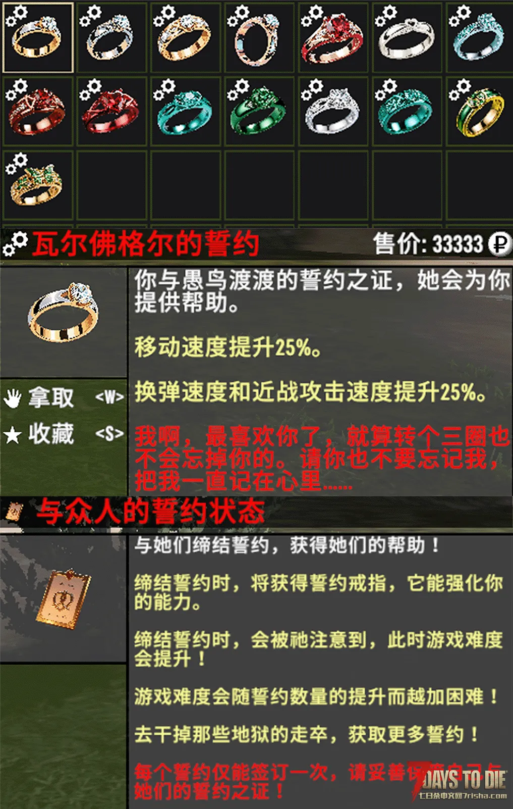 注意!在不开创意模式的情况下,一个玩家在同一世界均只能获取一枚同名誓约!!!