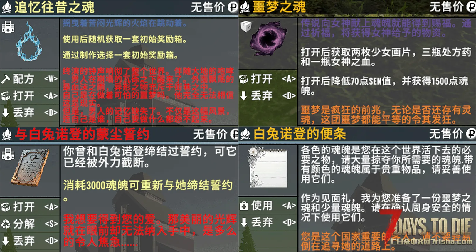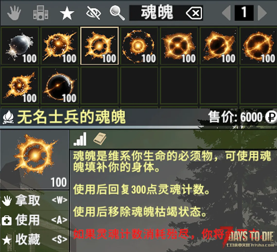 在搜刮时,若您能有机会获取【煅魂炉】,您将可以在煅魂炉中使用钱币购买本模组中的大部分药物和各种魂魄、灵魂。