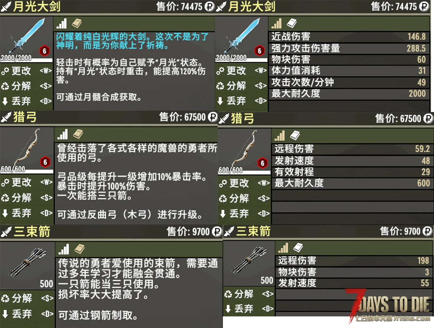 新增武器:【月光大剑】、【猎弓】