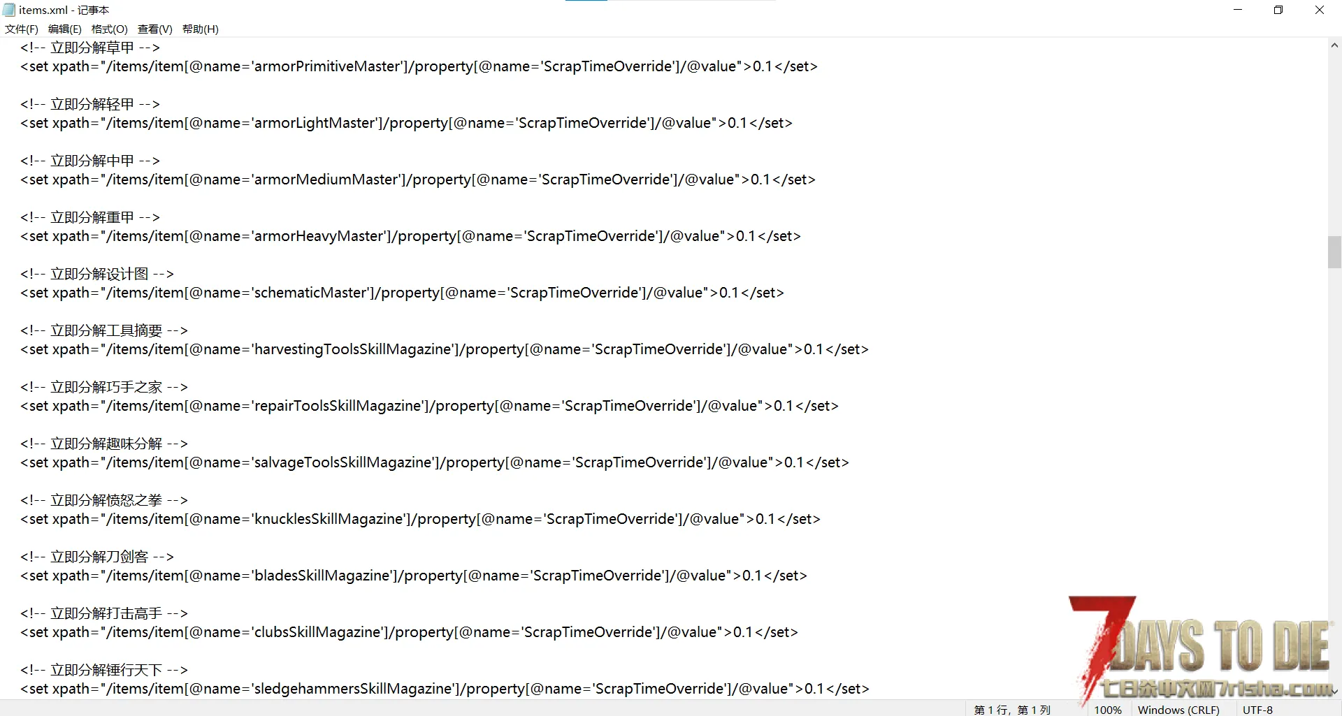 极大的缩短了分解武器和盔甲的时间,包含工具。