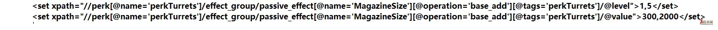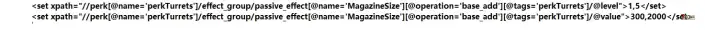 <passive_effect name=\"DegradationPerUse\" operation=\"base_set\" value=\"0\" tags=\"perkTurrets\"/>