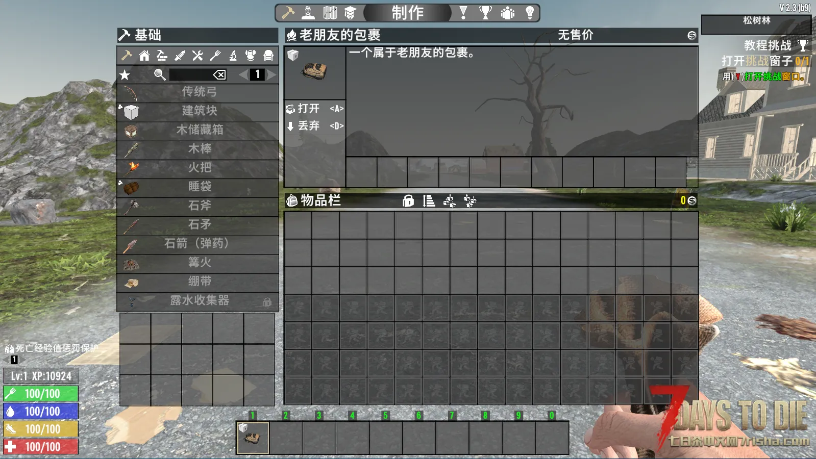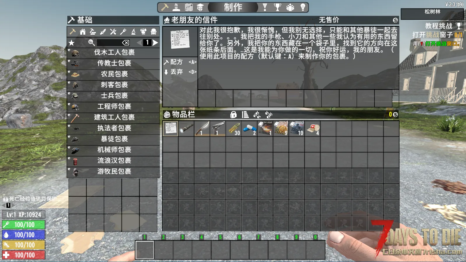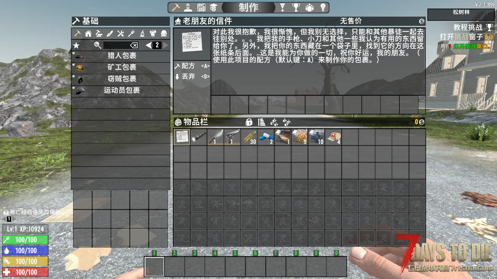 给你一个老朋友的包裹,打开后你可以看到老朋友给你留下的物资和信件。