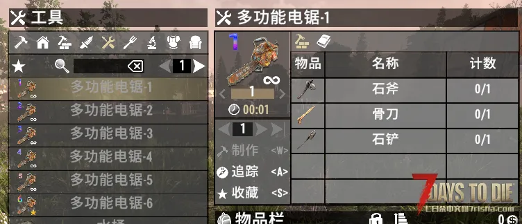 集成了所有的采集属性(刀,斧,扳手,锄),同时右键也可以进行物块升级维修,并且具备不错的伤害能力,同时设计了贴合游戏流程的合成链。