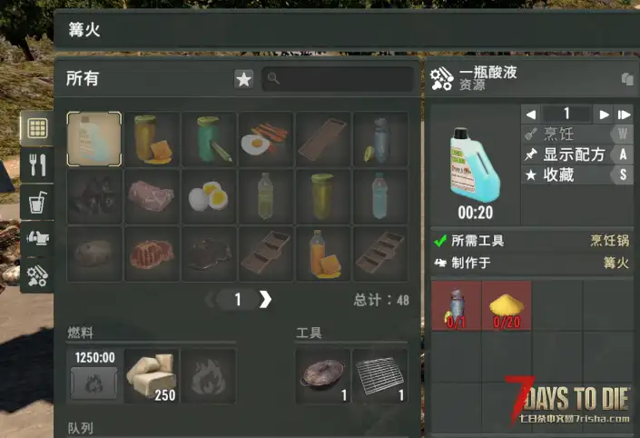 在篝火那里,1瓶玻璃罐的开水加(?)硫磺,合成1瓶硫酸
