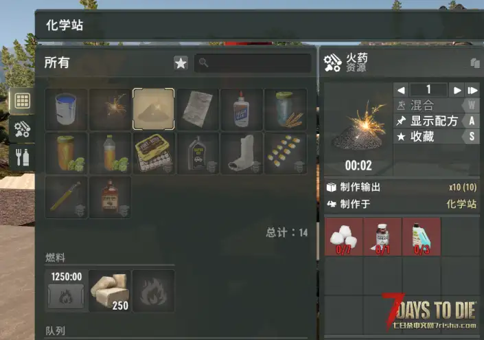 化学台, 7棉花,一硝酸盐,三瓶硫酸,合成10火药,返还三个空的玻璃罐