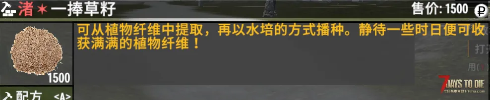 新增物品【一捧草籽】 (可通过制作获取)由植物纤维制作而成,可于【水培植物工作站】中生产植物纤维。