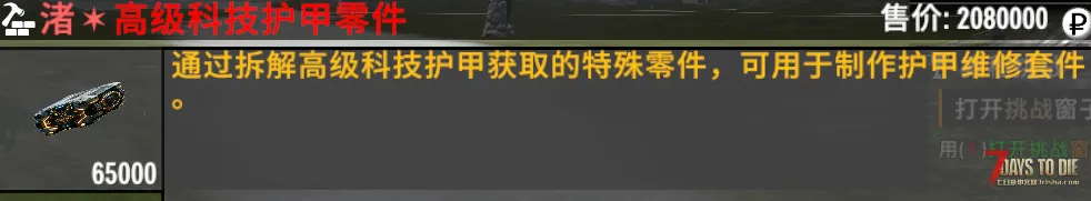 现在高级科技护甲可以分解出高级科技护甲零件,用来制作护甲修理套件。