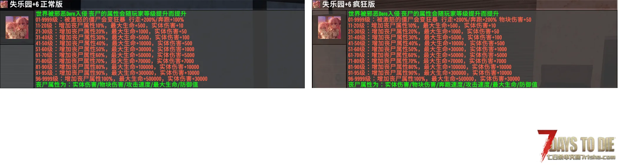 《失乐园+2.5》丧尸强化更新,从10级开始,每20级丧尸属性+10% ,玩家100级后才开启后5个阶段