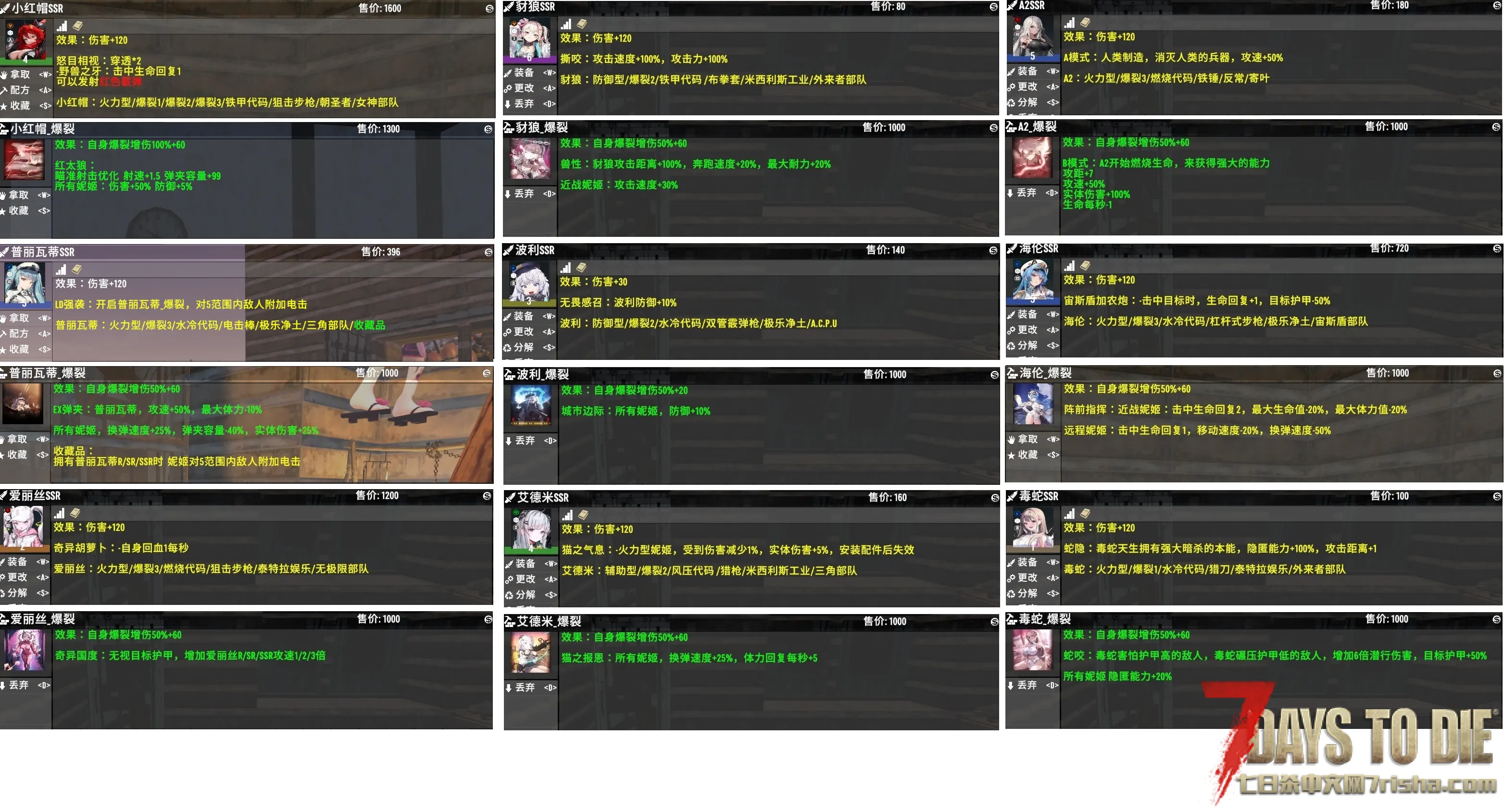 前期玩家目标—doro机器人(必备)—-小红帽(神)—N102尸潮神器