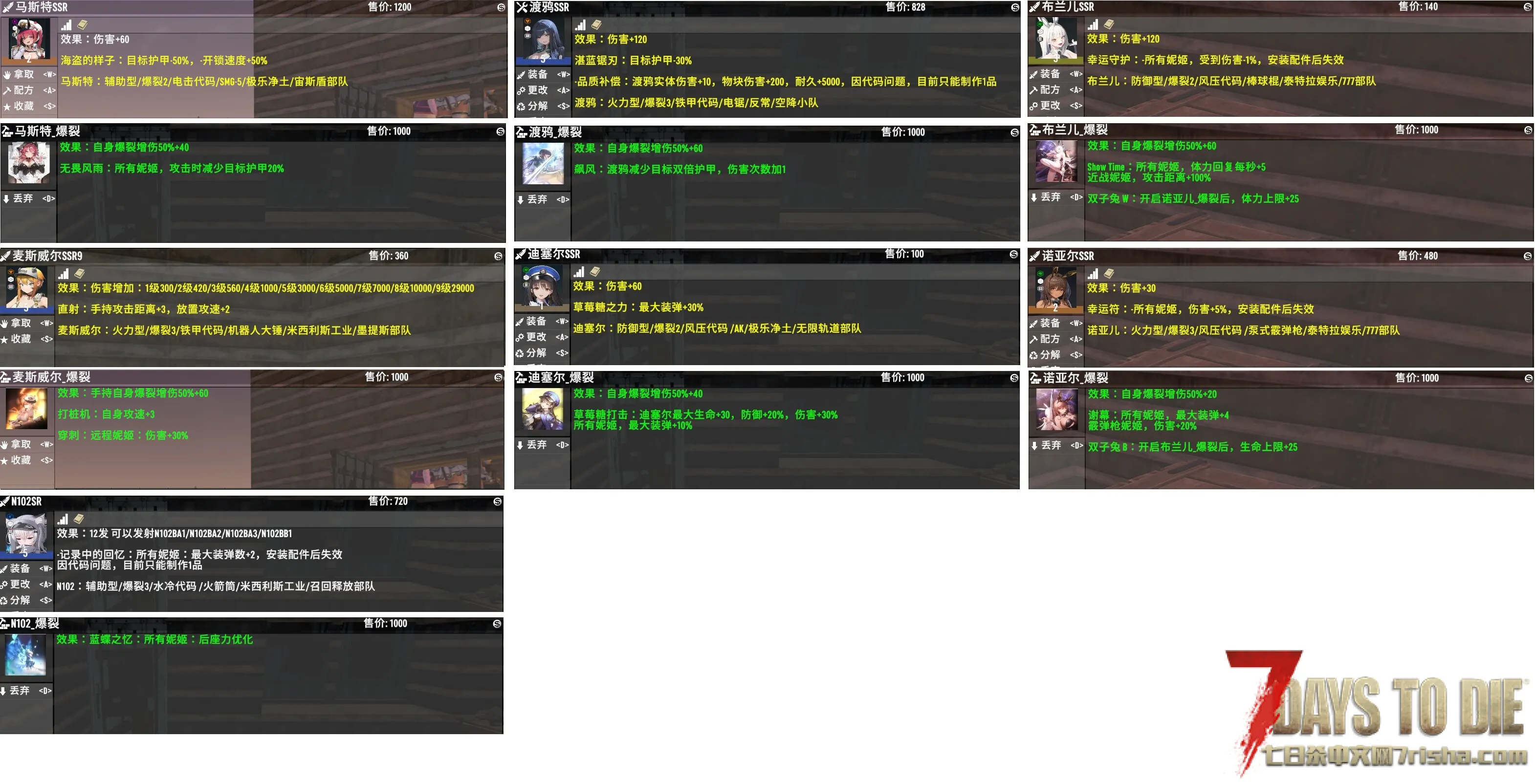 机器人妮姬 可以从SSR升级到SSR9 火箭筒妮姬 增加弹药N102BA3 N102BB1