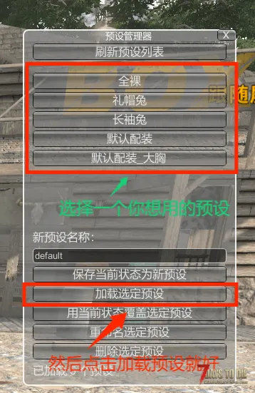 进入游戏后先点击本mod人物,然后呼出插件菜单