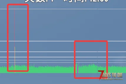 然后就把这功能搓出来之后发现一个很蛋疼的事情,就是每次播放舞蹈的时候,都会猛地突然掉帧(掉到个位数、十几帧),导致体验非常差劲。我一开始还以为是我没做好优化,所以花了一晚上搞一堆异步加载资源、分帧均摊开销等等。但是就是非常蛋疼,不管我怎么搞,总是会一瞬间卡死那种,按F8就会出现这样的曲线: