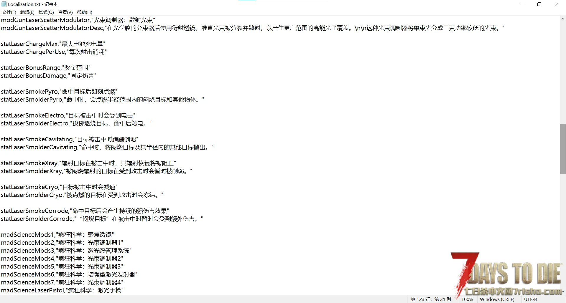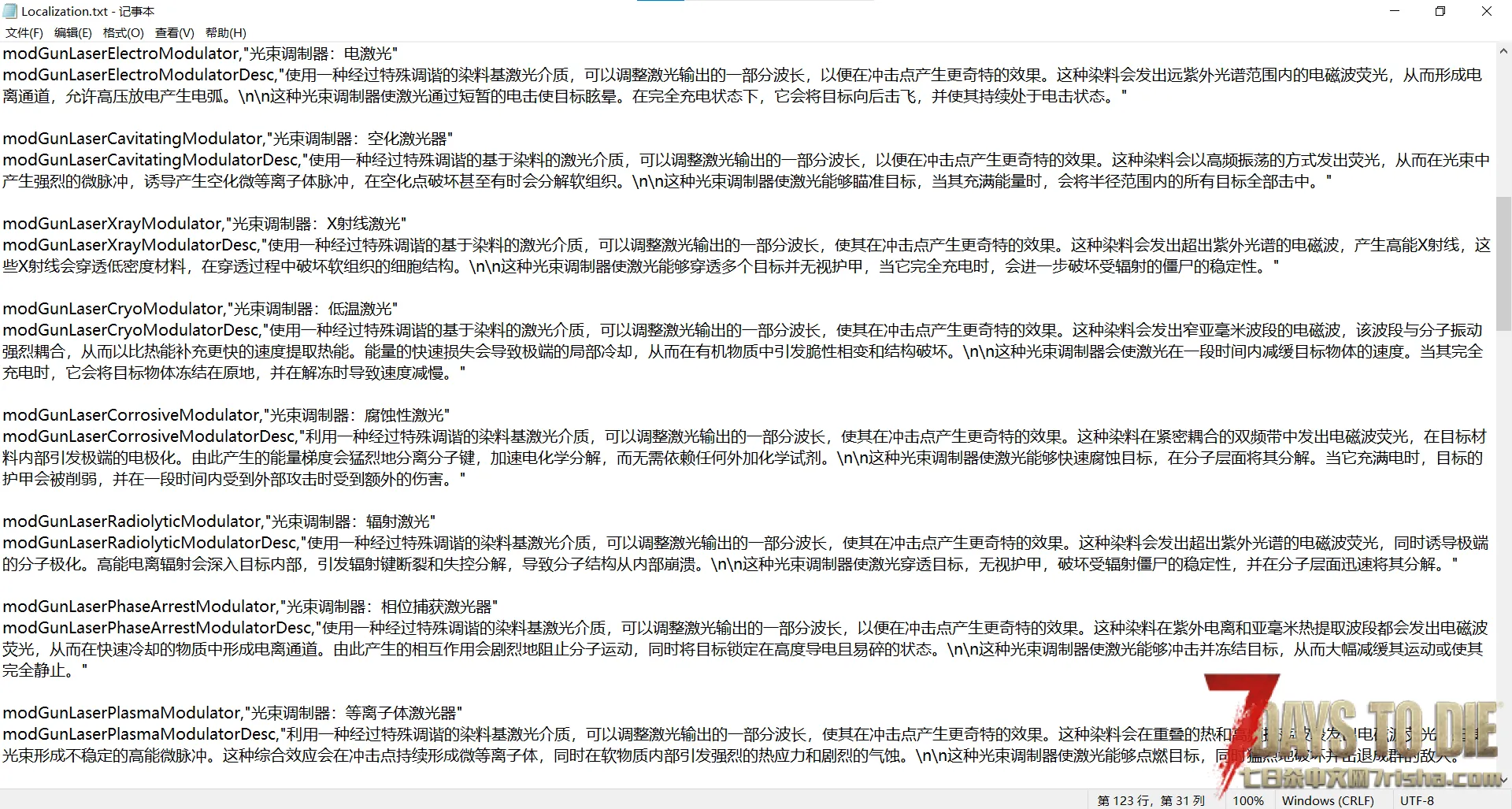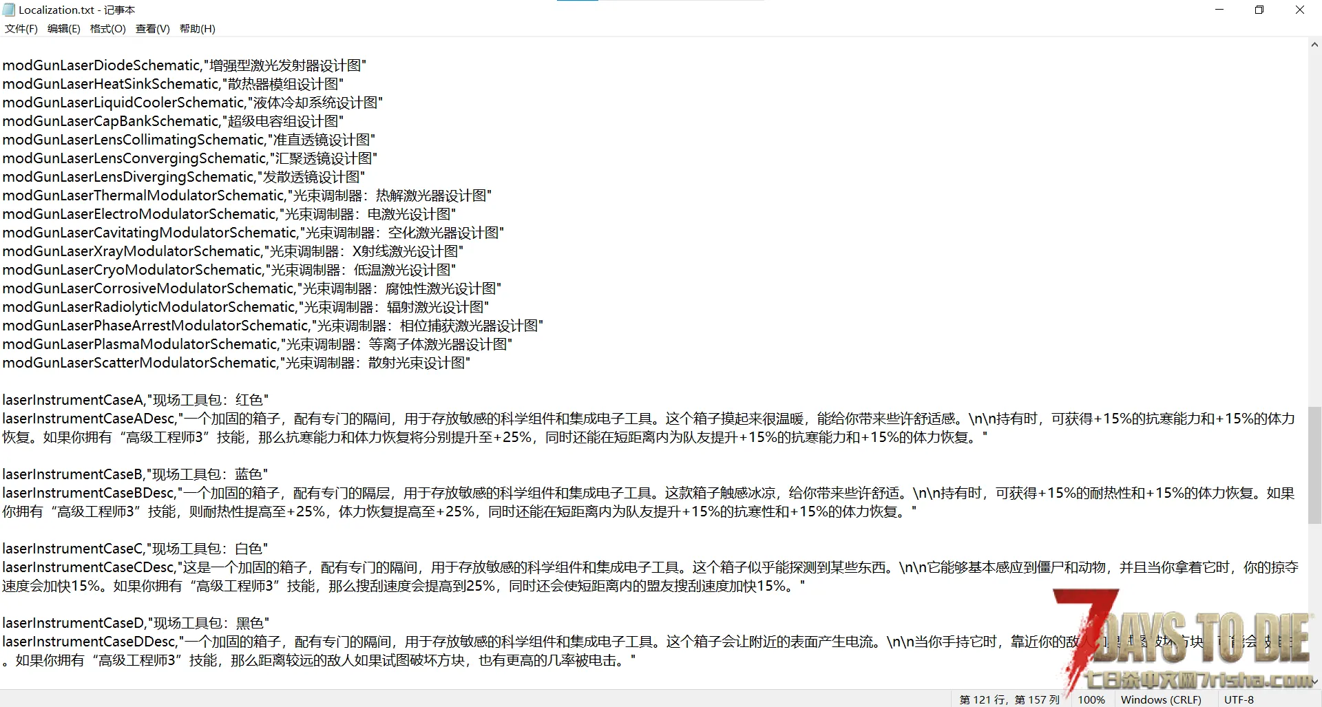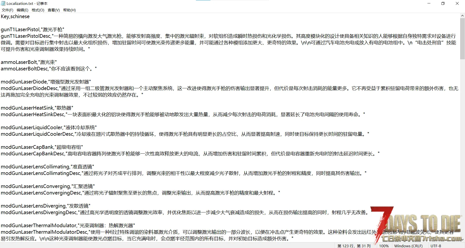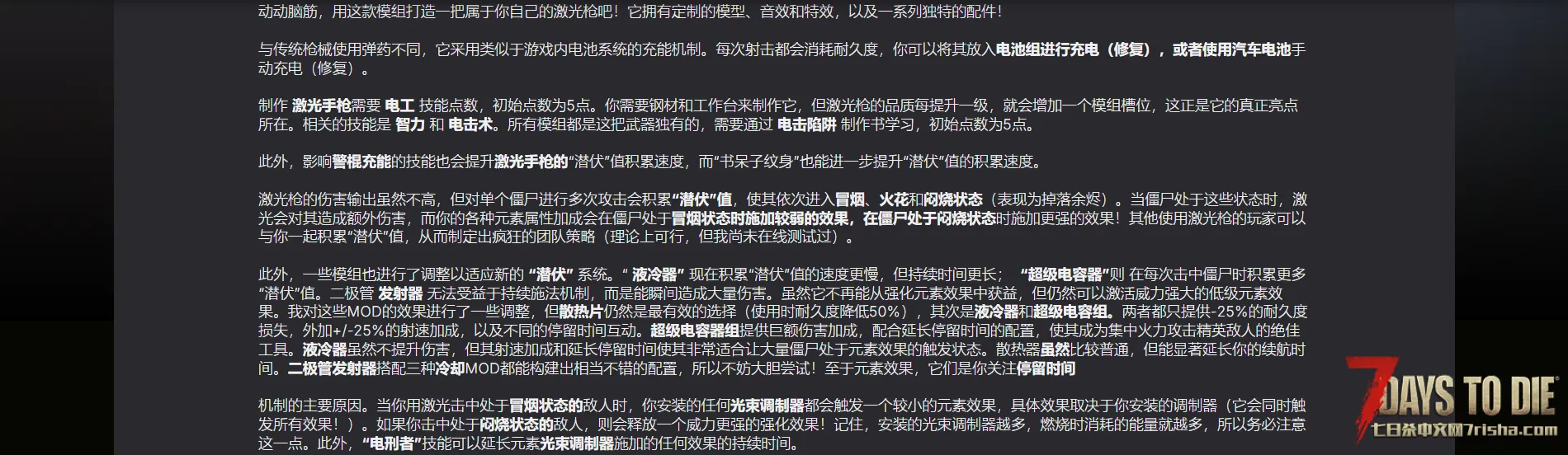 添加了一把跟智慧、电工和陷阱相关连的激光枪。