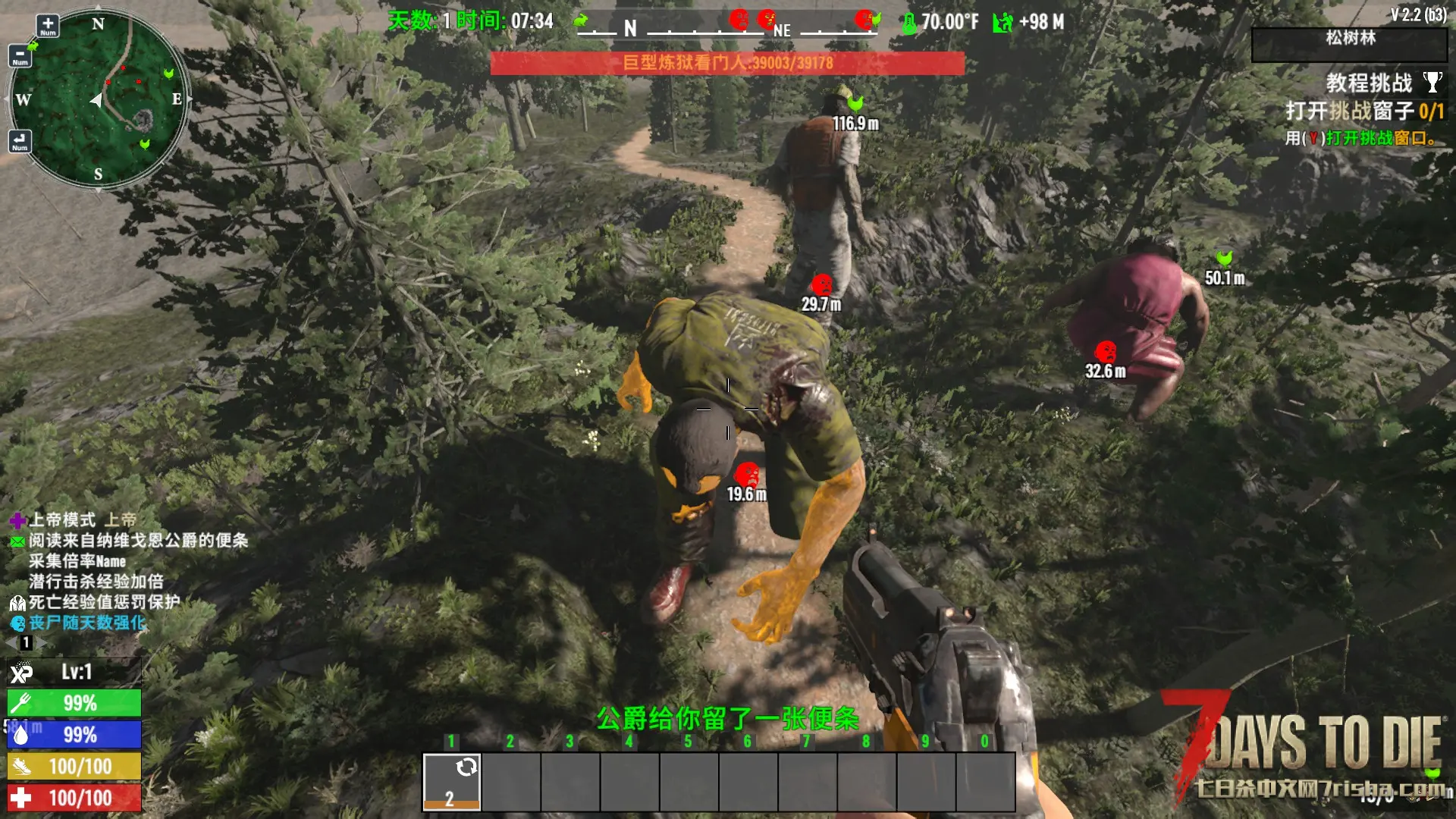 在【小型MOD】巨型丧尸(V2.x/原创/直连) – MOD下载 – 七日杀中文网作者的基础上把僵尸血量都减少了一个0,使得游戏看起来正常了。