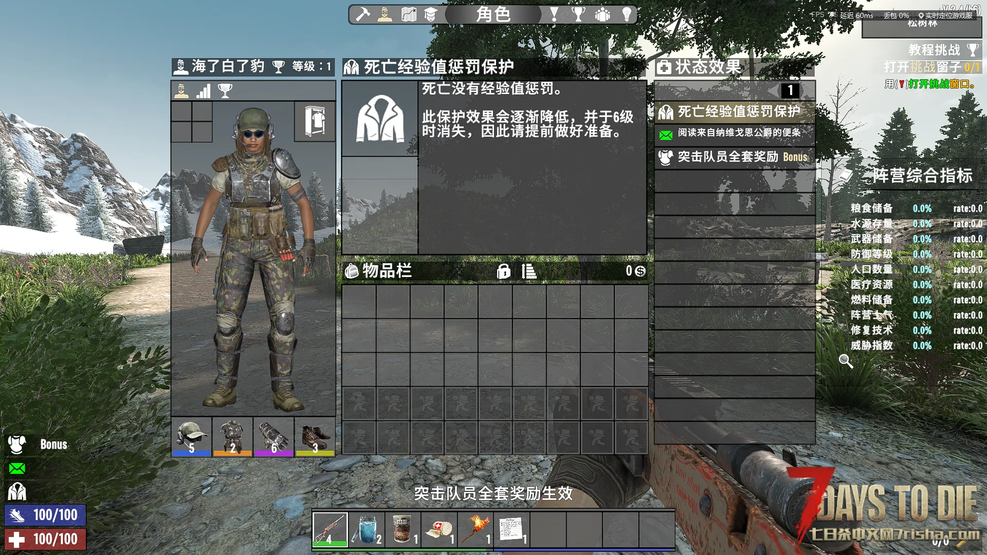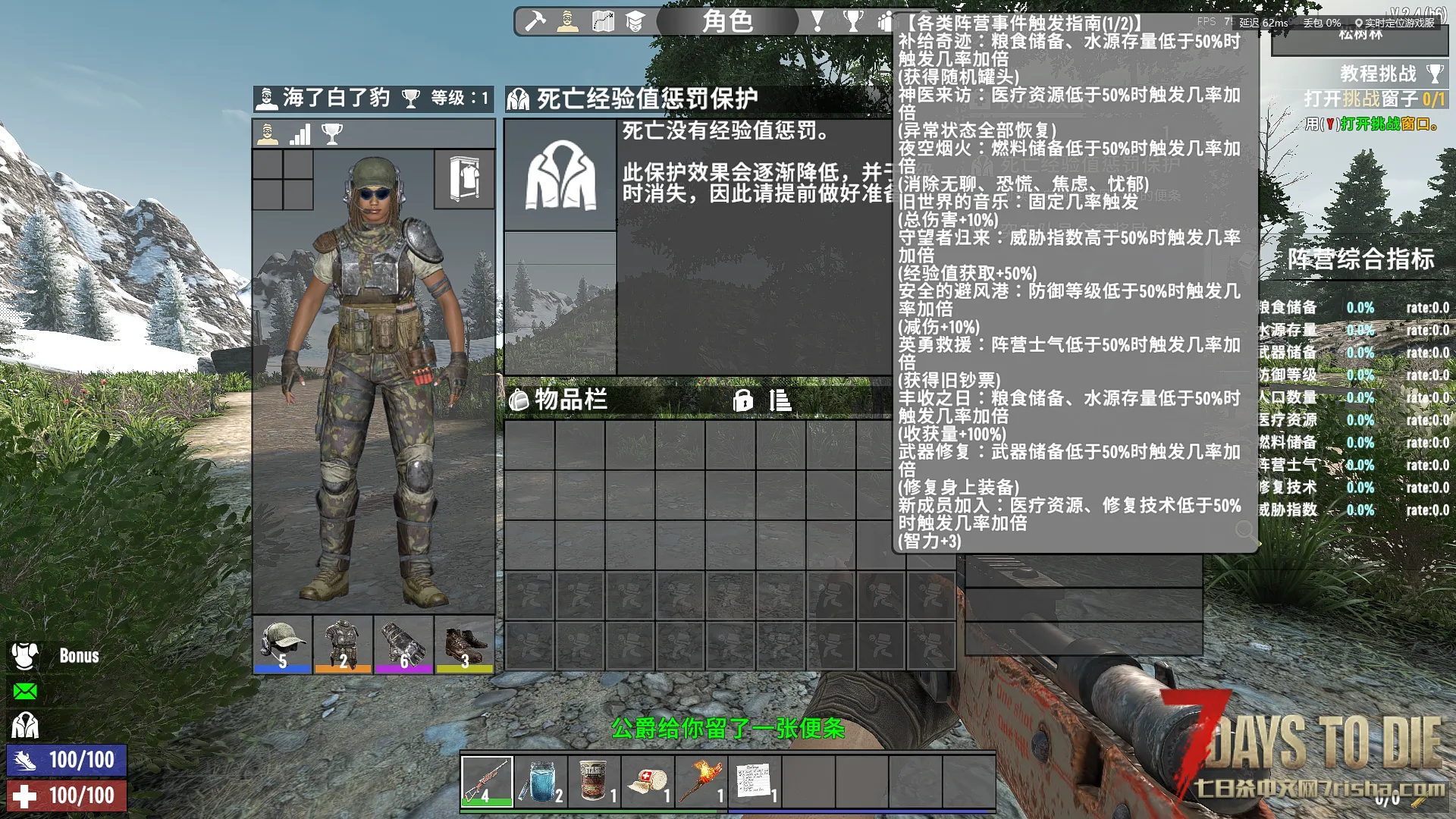 在《7 Days to Die》的原版世界中,没有派系系统。因此,在技能菜单和角色状态面板的右侧添加了派系系统UI,嵌入了虚拟资源管理模式。你可以在游戏中找到或制作“虚拟资源契约”,以增加特定资源的存储。这些虚拟资源的存储水平会影响随机事件的发生!