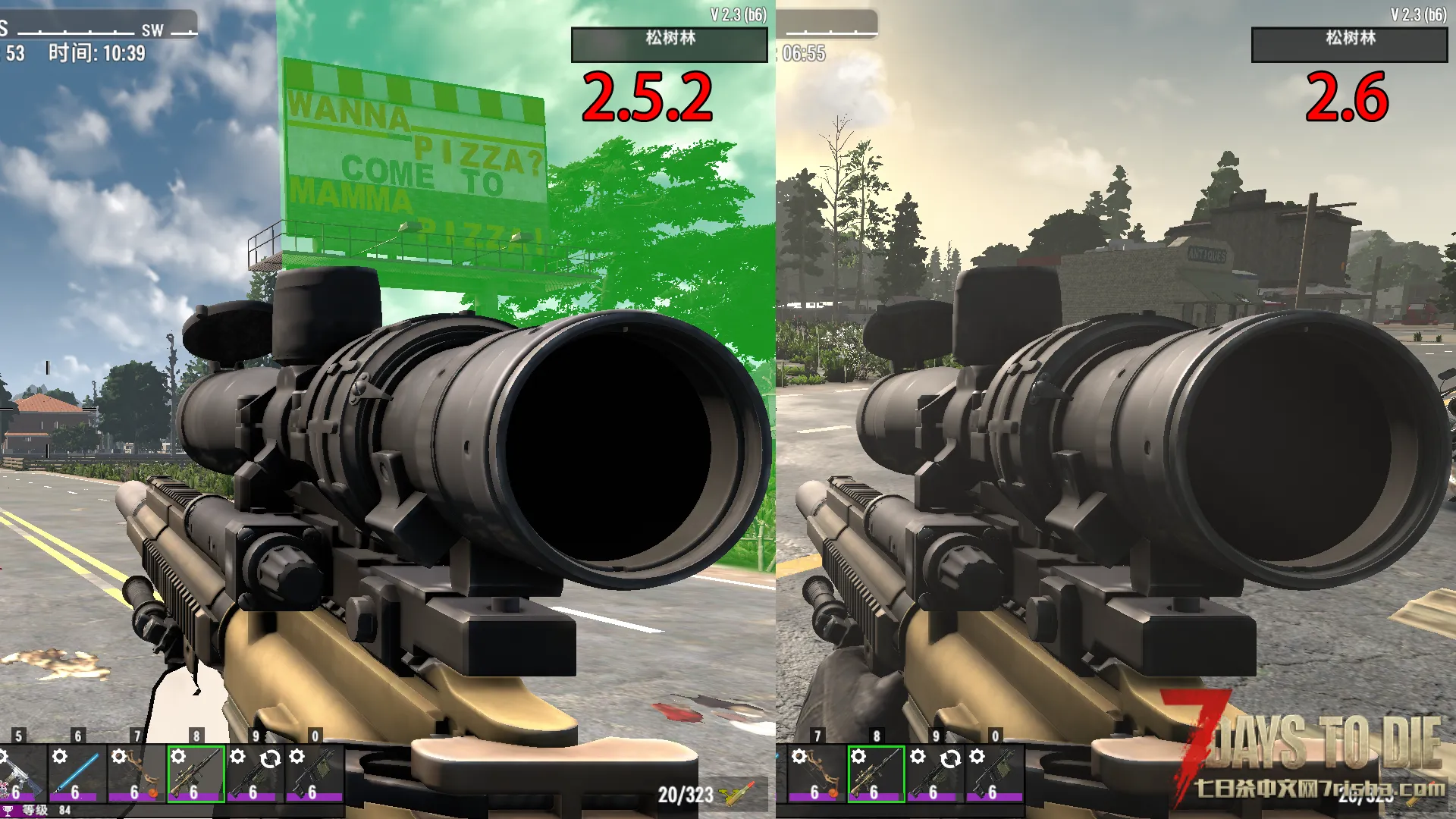 可以看到确实在老版本2.5.2下动漫手臂正常显示了,而2.6则变回原版手臂。
