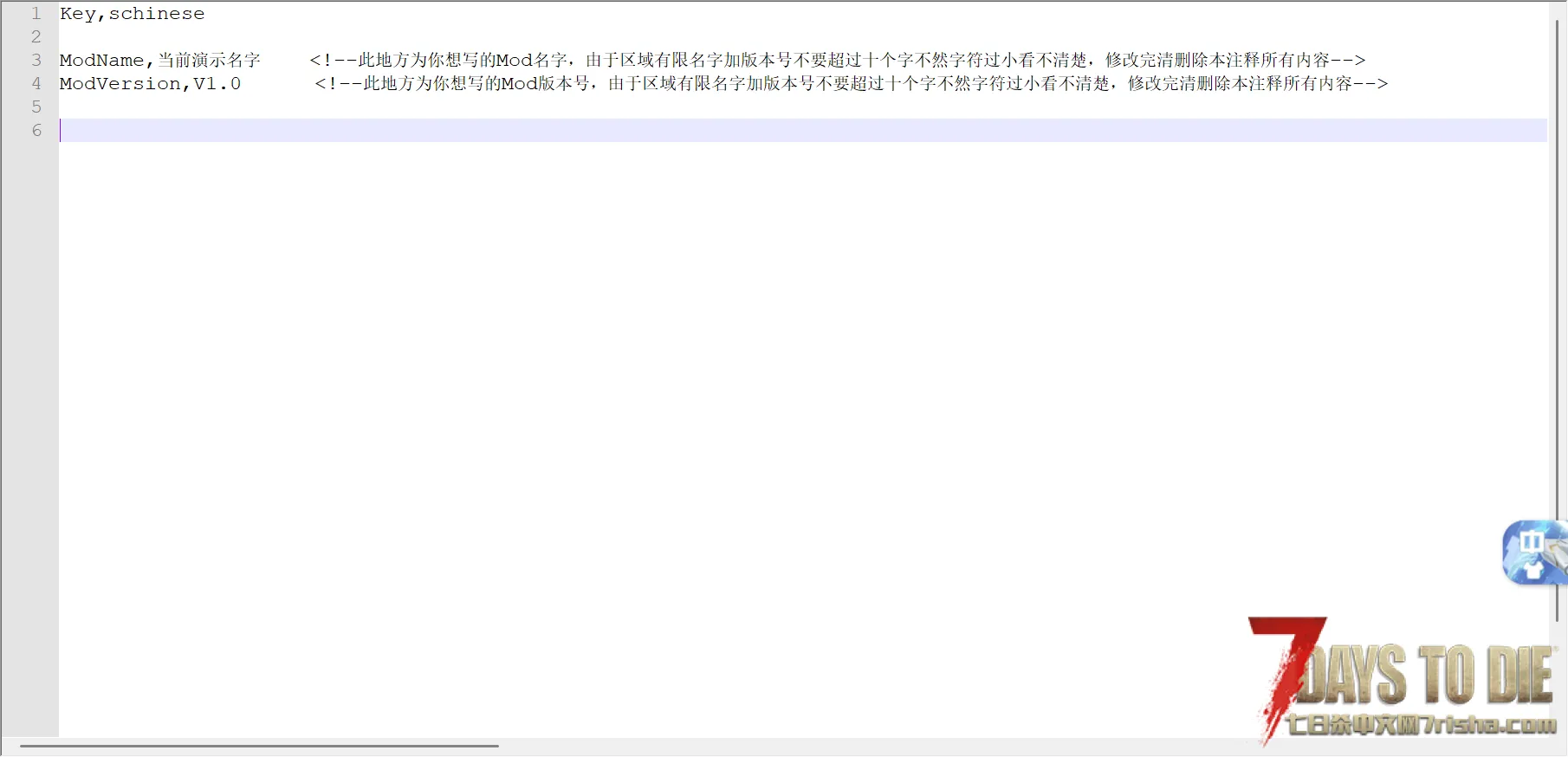 打开文本,显示为以下内容,由于区域有限名字加版本号不要超过十个字不然字符过小看不清楚,修改完成后把注释的所有内容全部删掉