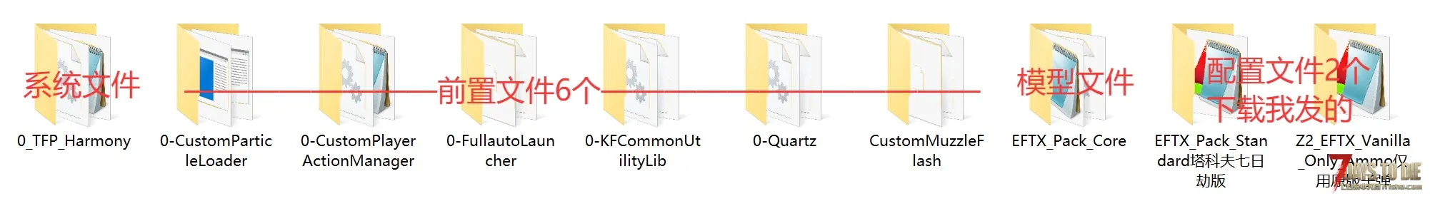 枪包适配:前作【七日劫】原本适配的是IZY枪包,还专门为该枪包匹配了一套武器挂饰;但是该枪包2.0之后的表现差强人意,本作首发版推荐适配塔科夫枪包,有动手能力的玩家可以下载武陵花大佬发布的mod,需要现成的也可进群获取文件(5.2G)