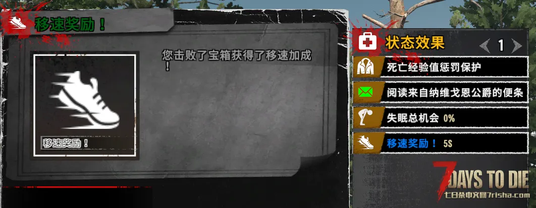 击败后获得持续10秒的移速加成,击败多个相同的宝箱获得的buff可重置不可叠加。