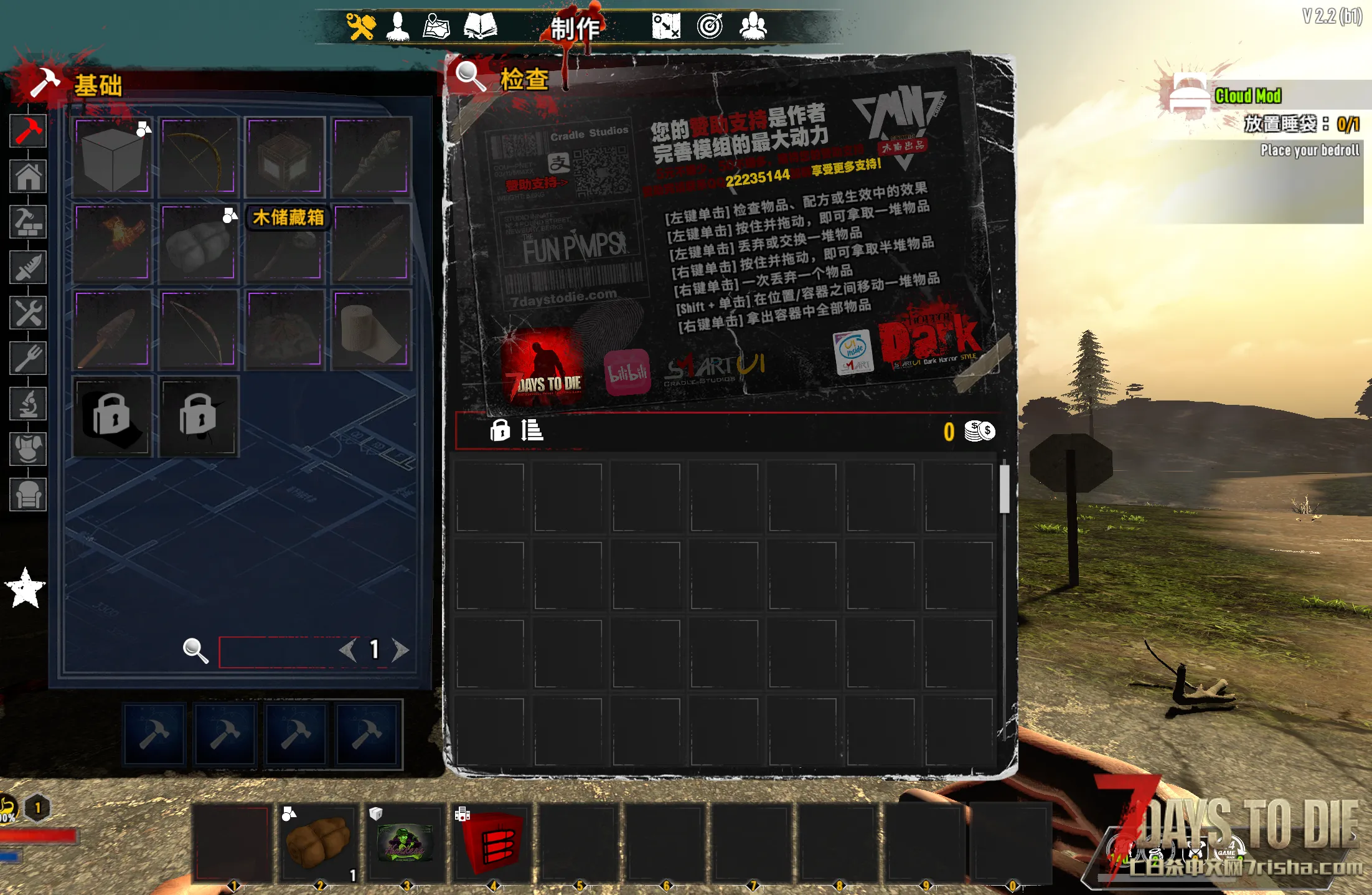 有BUG我游戏版本是2.2B1,,UI用的smartUI 使用狐臭mod制作栏没有显示,去掉mod就好了,是不是只能2.4使用