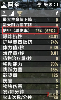 2.然后是按护甲值减少点数伤害的版本,1点护甲就减少1点伤害,但伤害最低不会低于1点,这个类似一些RPG的防御逻辑,这个版本并不更改属性窗口的显示,就不给图了。