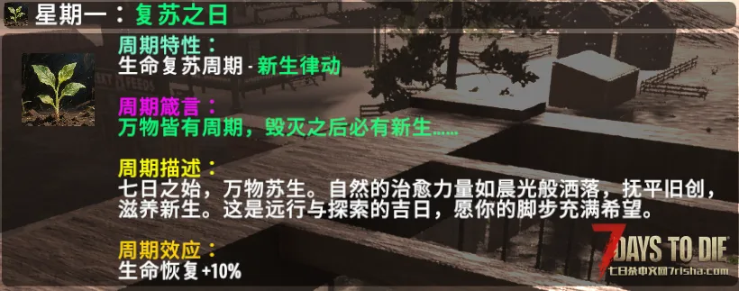 【七日命运循环】: 每日不同的增益祝福!周一生命恢复,周三移动加速,周日伤害爆发……