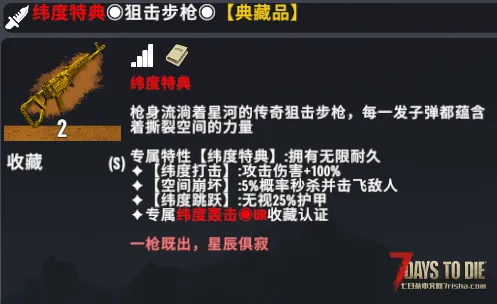 【终极典藏武器】: 追求传说中的 【纬度特典】 系列武器。