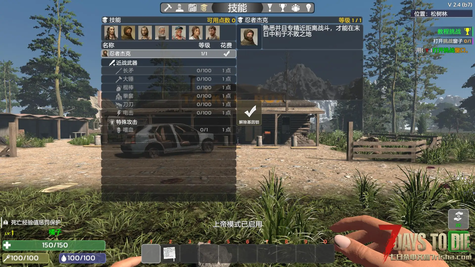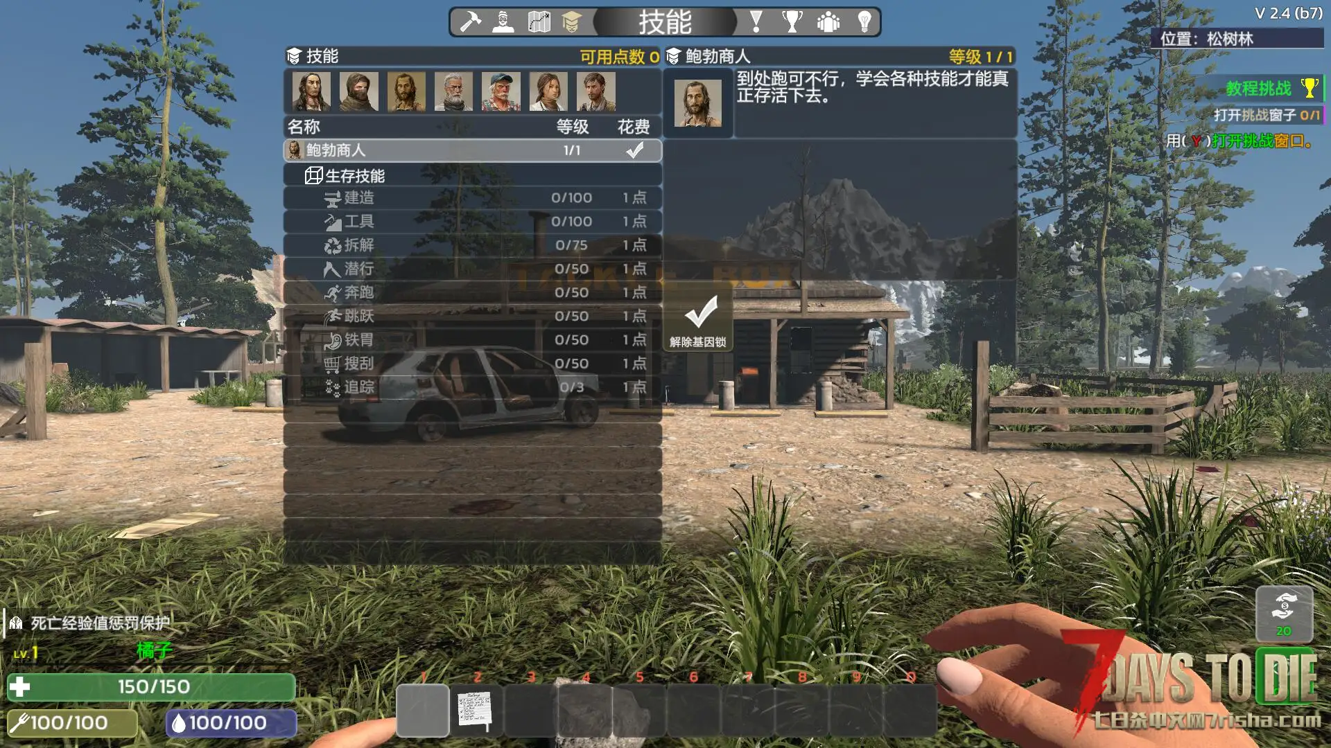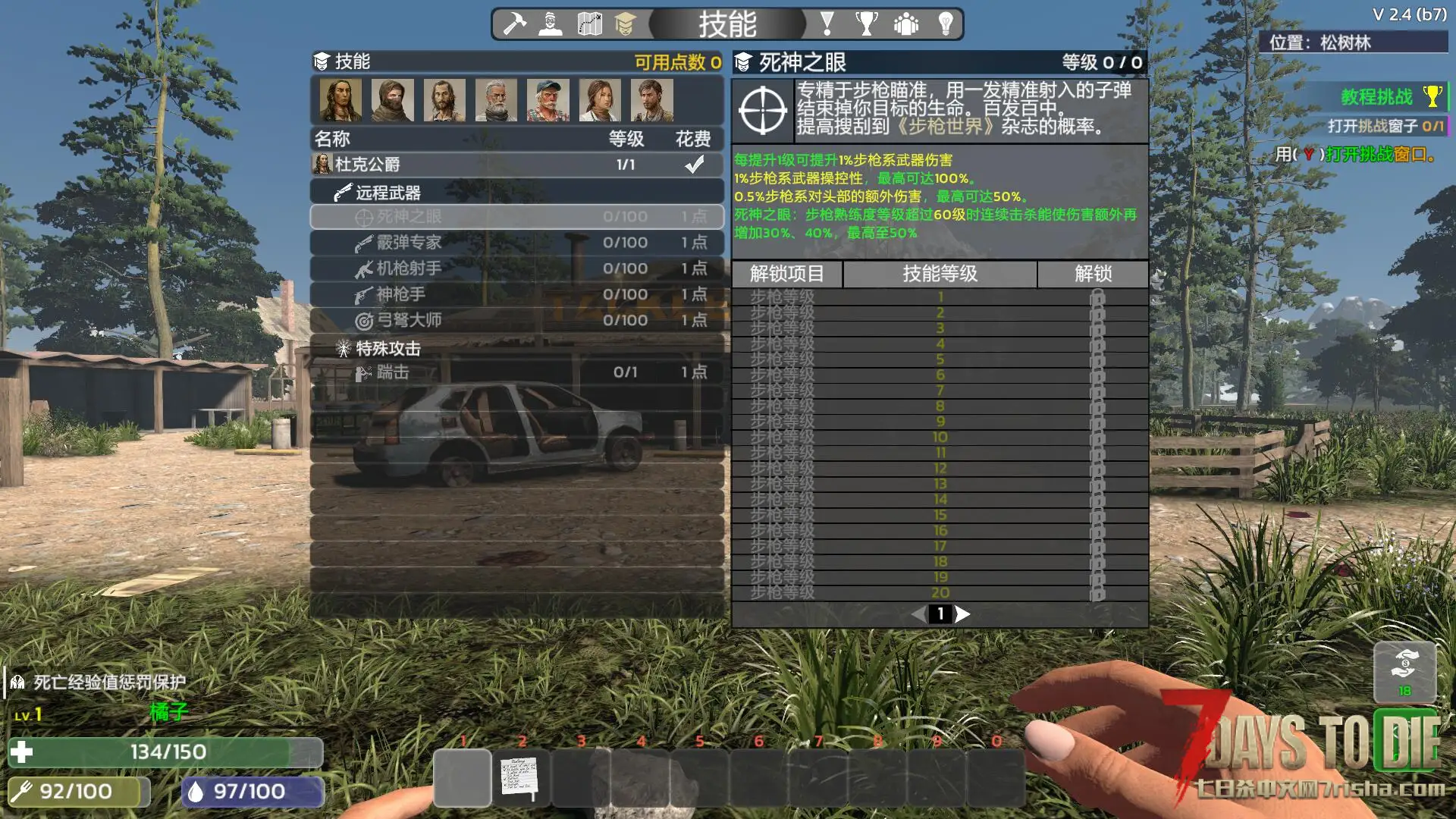 大改七日杀原版技能组设计 摒弃了等级加点设计 更改为新的熟练度系统 你的一举一动都会更改为熟练度类型升级技能!